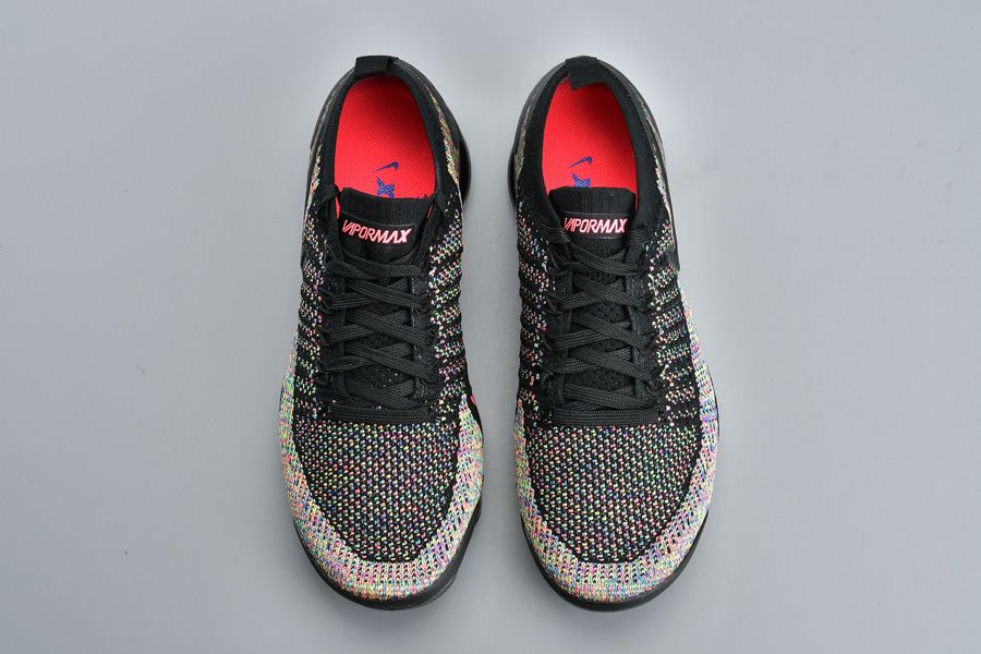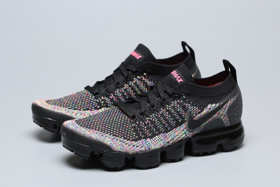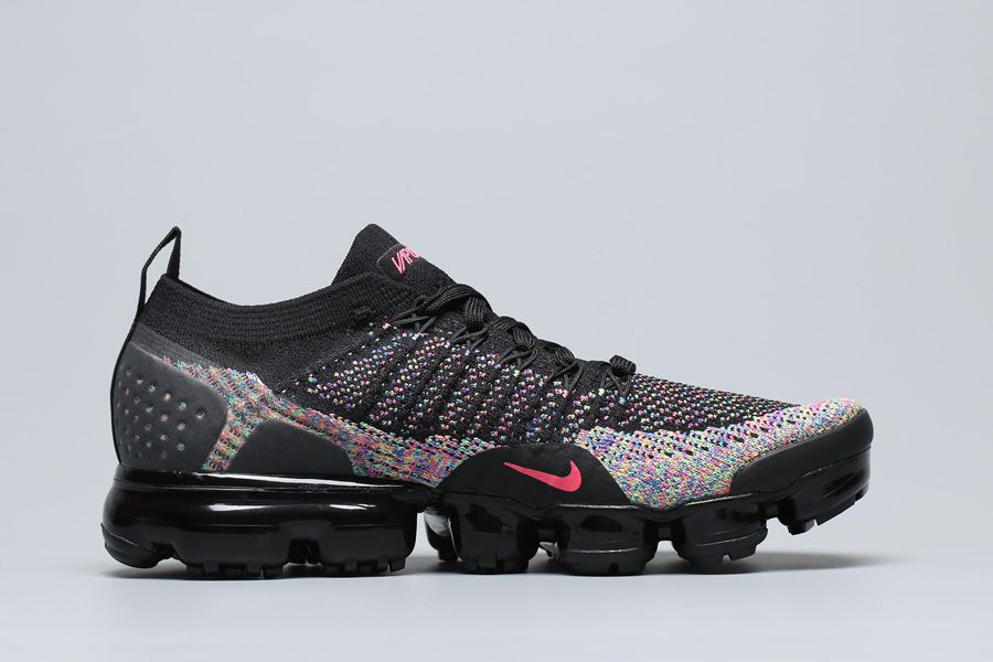 Aptly dubbed Multicolor, these lightweight sneakers are crafted from Flyknit, and are painted in a primarily black shade. Colourful accents feature throughout the silhouette, making its way throughout the entire upper, while the full length Air VaporMax midsole is coloured in a glossy black hue. Around the heel, a perforated heel counter offers wearers additional stability.