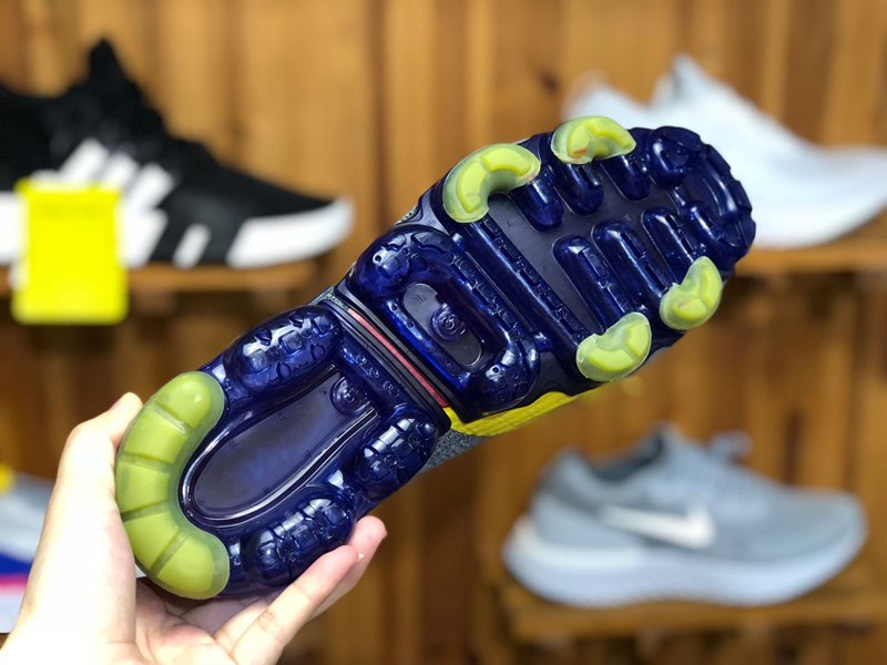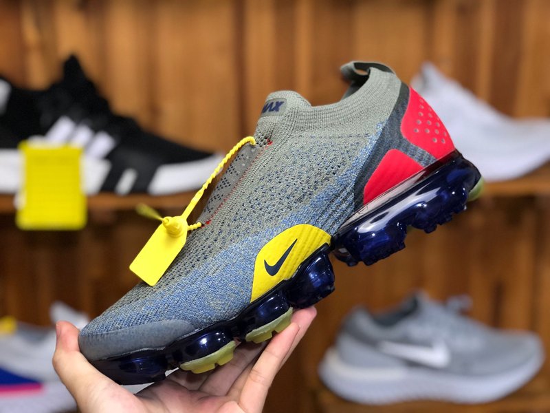 The upper takes on a deep grey color, with blue strands woven in around the toe box. Each side of the TPU lined heel cage comes in a different, bright color, with a gold hue on the outside and hot red on the interior. The eye-grabbing Vapormax sole unit is dyed a deep blue tone, with yellow caps around the heel and toe. The new colorway is finished off with multi-colored stitching around the midfoot strap. This Nike Vapormax Moc 2 is eerily reminiscent of the Air Max 95 “Greedy”, a popular mismatched colorway.