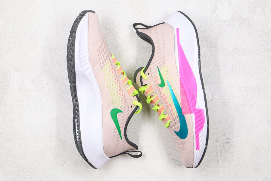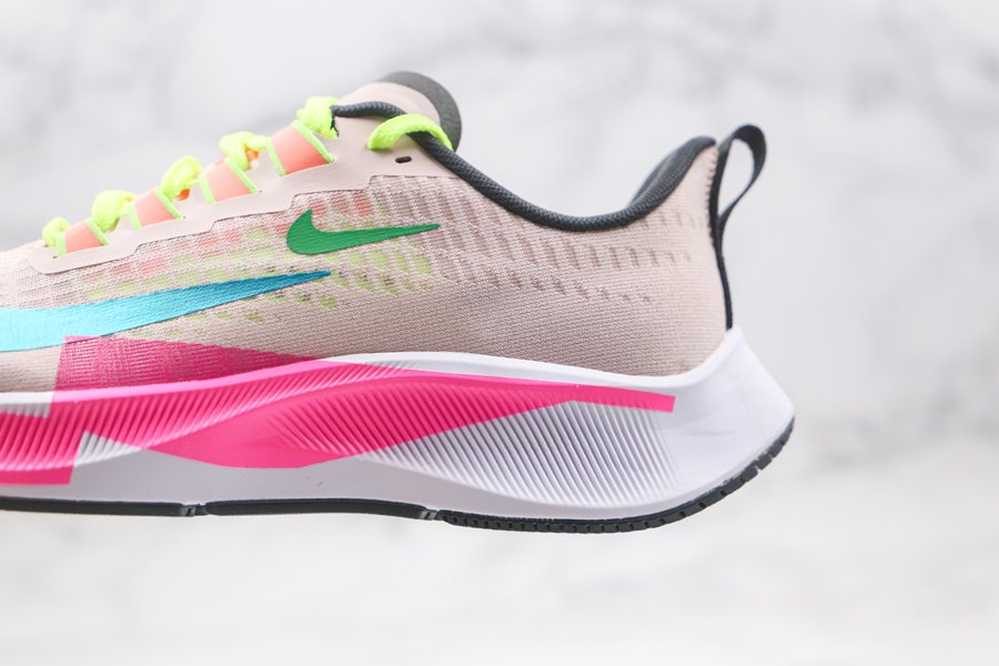 Nike has just released a new Air Zoom Pegasus 37 Premium which is part of the brand’s women’s lineup and comes in a flashy theme. This Nike Air Zoom Pegasus 37 comes dressed in a Barely Rose, Pink Blast, Atomic Pink and Bright Spruce color combination. Looking closer they feature double Swooshes on the lateral side along with Pink overlaying the White midsole with a unique design. Volt then lands on the laces while Orange covers the eyelets and design down on the tongue. Finishing the look is Black on the liner, heel pull tab and rubber outsole.
