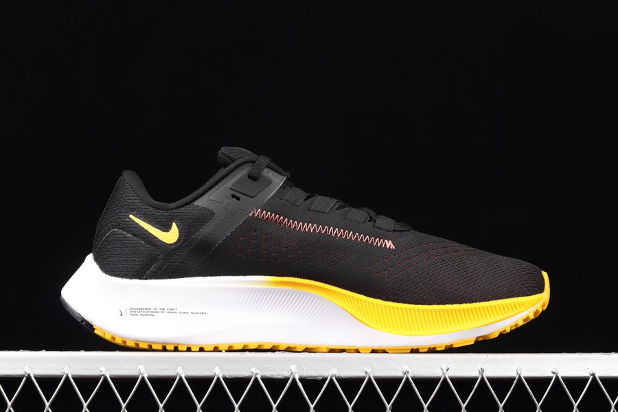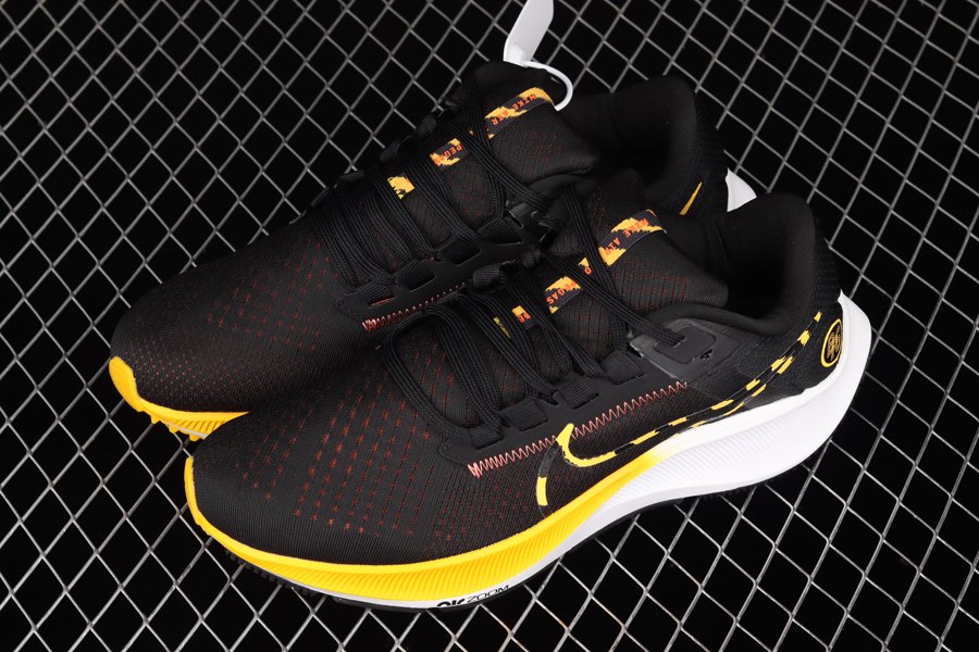 The Nike Air Zoom Pegasus 38 Blue Ribbon Sports pays homage to the Blue Ribbon Sports space, which reopened on January 25, 2019 as a community space for local runners to gather and talk, just as they did with Johnson in the late ’60s. The sneaker comes dressed in a Black, Yellow, and White color scheme highlighted by details that include the “BRS” logo on the lateral heel and branded insoles. The left insole comes with the address of its original location. A White midsole and tri-colored outsole round out the main features of the sneaker.