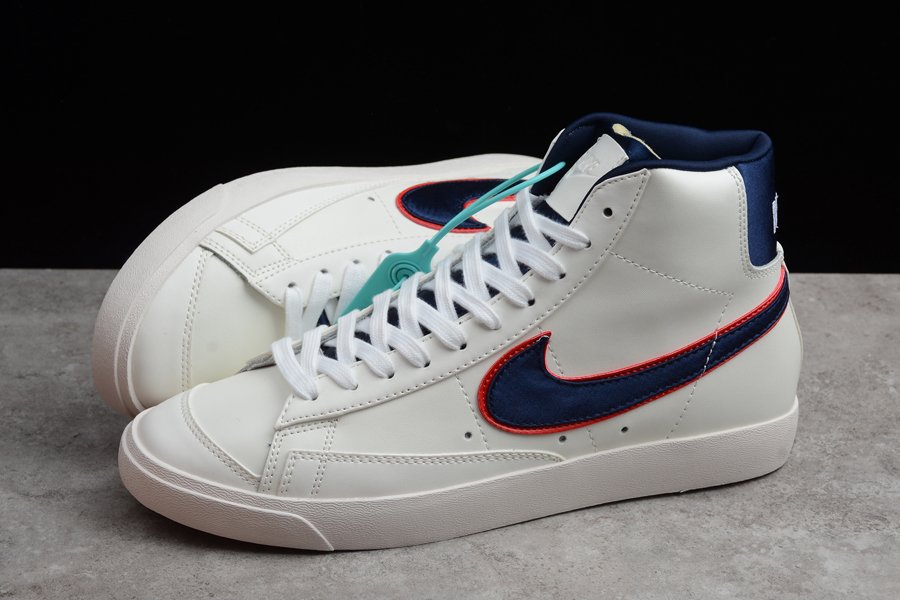 The Nike Blazer Mid Vintage ’77 to surface is this new cream leather style, complete with sporty navy and red accents. This makeup returns to its basketball roots with a timeless leather upper, and also opts against the shaggy suede toe cap from other contemporary Blazers for the sake of continuing its all-leather stylings. A rich navy is then used on the exposed foam tongue, heel, and the midfoot’s Swoosh, where it’s surrounded by bright red trim for a patriotic contrast. White laces and more tonal cream stylings on the midsole and outsole then complete the look.