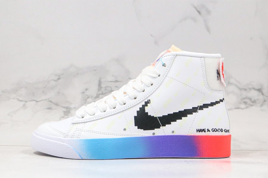 Celebrating the gaming culture, the Nike Blazer Mid ’77 Vintage Have A Good Game is equipped with updated details that gives the model a brand new look and feel. Done in a White, Bright Crimson, and Black color scheme standout features include the digitalized Swoosh logo, colorful gradient sole and a removable backtab that reveals a patchable surface that allows you to attach a smiley face patch that gives you an alternate look. Additionally, the White upper glows in the dark revealing all-over Nike and Swoosh branding along with “Have A Good Game” print across the lower heels.