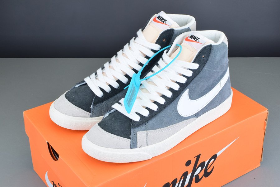 Taking on a neutral look that allows you to pretty much rock the sneaker with any fit, this Blazer Mid 77 Vintage starts off with a Cool Grey suede construction all throughout the upper with black overlays hitting the eyestay and toe. Next we see Summit White placed on the Swooshes, tongue, inner liner, laces, heel tab, midsole, and even the rubber outsole. Retro Nike branding on the tongues, Nike branding on the heels, and an exposed foam tongue wrap things up on this Blazer.