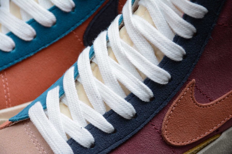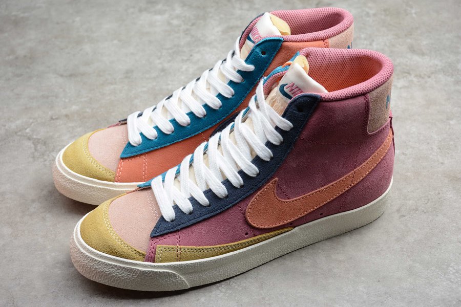 Done in a Desert Berry Red, Deep Navy Blue, Washed Lemon Yellow, and Atomic Powder color scheme, this special version of the model is constructed out of a full suede upper using multicolored panels and also opting for a mirrored aesthetic where the lateral sides and medial sides use different color blocking. Additional details on the shoe include the mesh inner lining, padded tongues atop a solid White rubber sole.