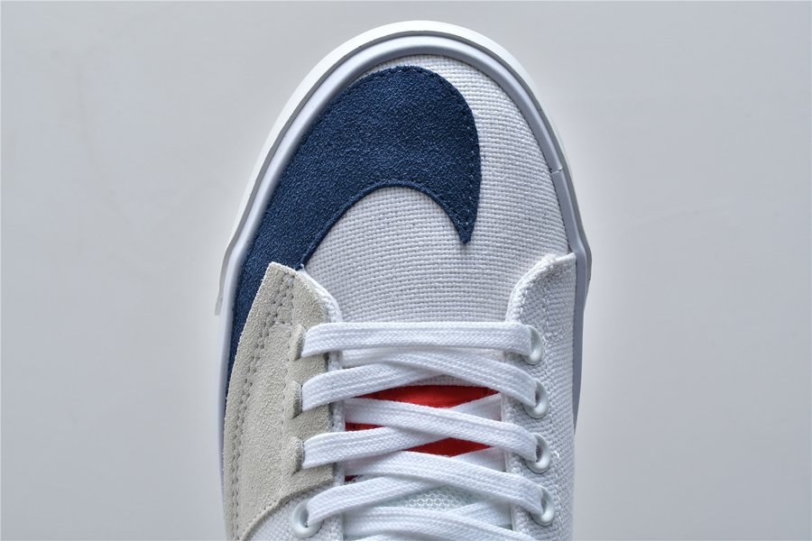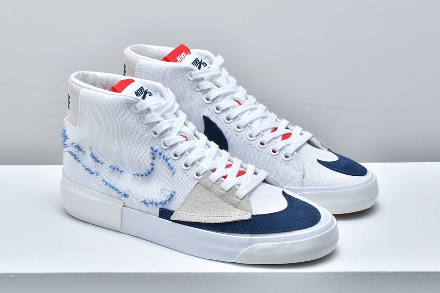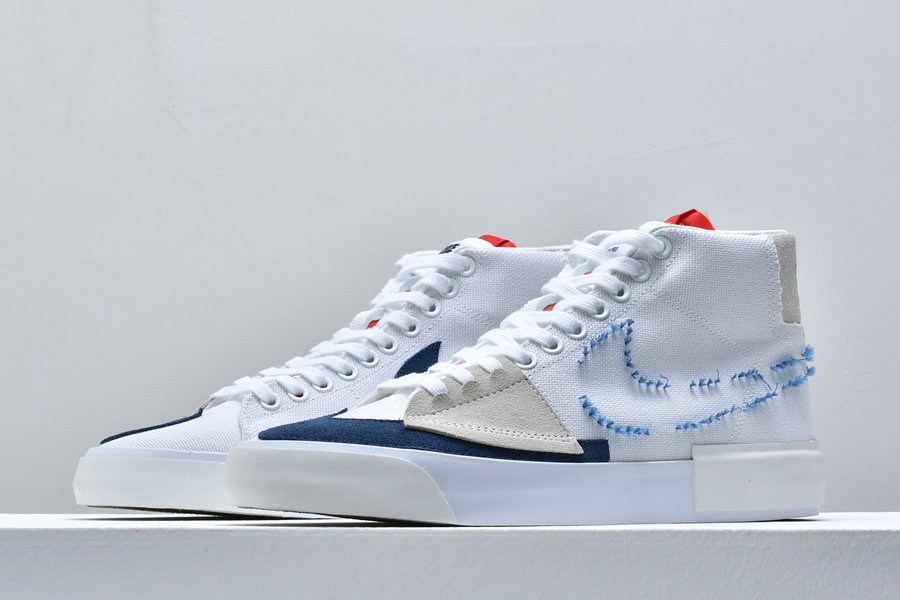 Inspired by skateboarding’s DIY aesthetic, the Blazer Mid SB Edge ‘Hack Pack’ gives the impression of a sneaker that was reassembled in haphazard fashion. The white canvas upper features a misplaced suede overlay and Swoosh, the latter leaving behind frayed stitching on the lateral side. The kicks are finished with two tongues, one on top of the other with exposed foam construction on the uppermost tongue.