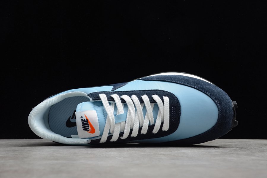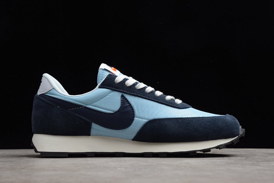 Officially slated for Light Armory Blue, Obsidian, White, and Sail, this Daybreak opts for a baby blue nylon upper which is complemented and contrasted by navy blue suede overlays around the toe, eyestays, and heels. To match, a leather Nike Swoosh in navy also adorns the upper for a very clean look. To finish off the look, white detailing is given to the laces, sockliner, and midsole.