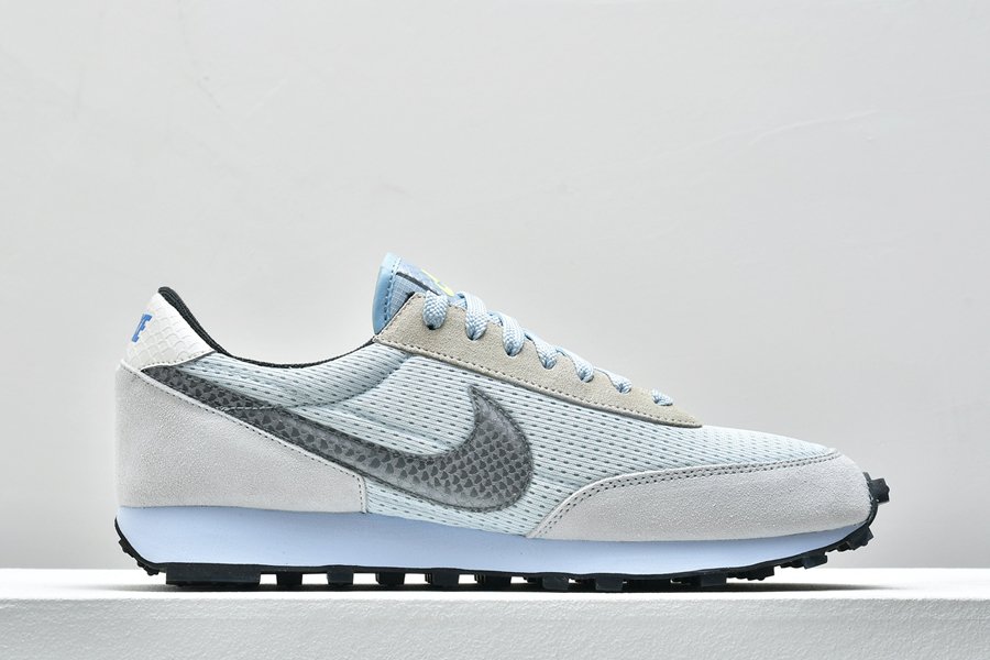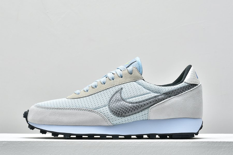Shown above, this versatile colorway of the Nike Daybreak comes constructed out of a mesh upper paired up with a textile tongue. Other details include the suede overlays detailed with exotic snake-like print on the Swooshes, tongue labels, and heels.