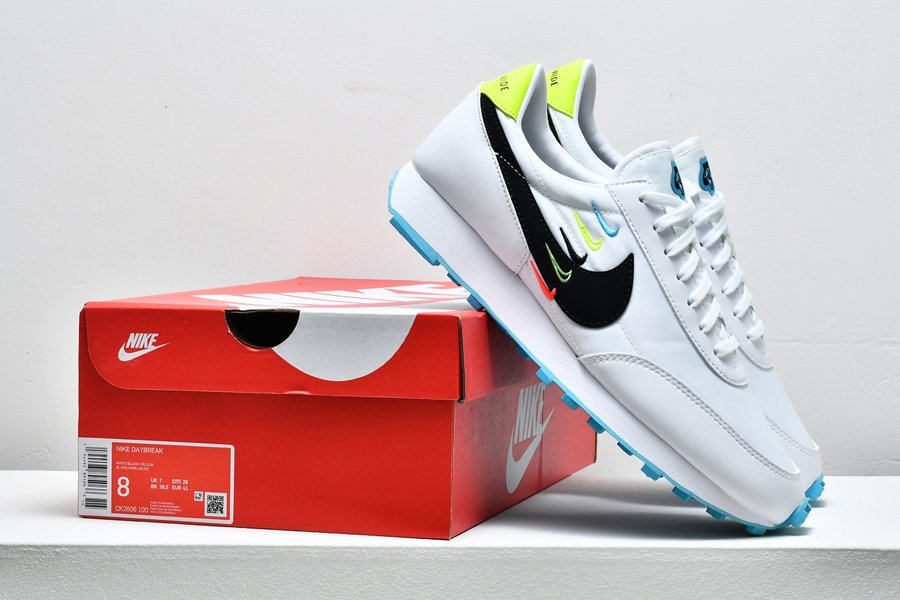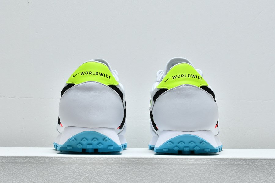 Thus the Nike Daybreak “Worldwide Pack” comes with a white leather upper that is highlighted by dope neon details. The colorful Swoosh print on the sides as well as the “Worldwide” branding on the heel cap complete the look.