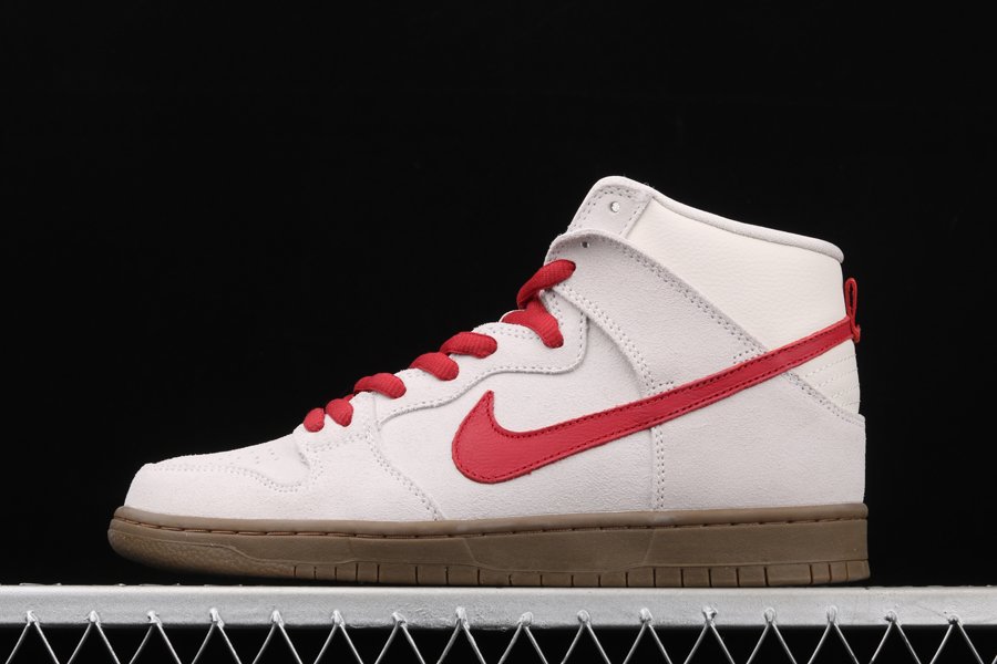 The Nike Dunk High Pro SB “Birch Hyper Red” features a distressed, weathered suede upper for a broken-in look. The high top features a solid gum sole with ripstop nylon at the ankle for added support and protection. For a burst of color, the sneaker also boasts a Hyper Red tumbled leather Swoosh on the side panel that extends to the heel tab.