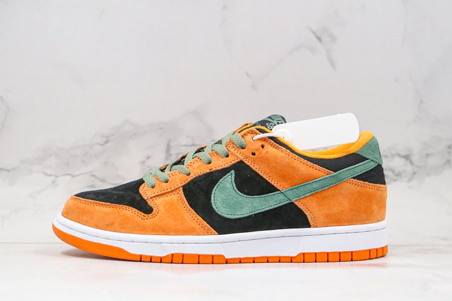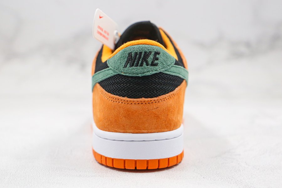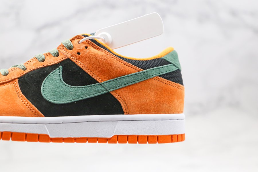 The Nike Dunk Low Ugly Duckling “Ceramic” flaunts the OG color scheme of Black, Ceramic, and Nori. Donning premium suede uppers, the underlays are coated in black, while contrasted with the highlight orange overlays and green accents throughout. Finally, a white midsole and orange rubber outsole tops off the design.