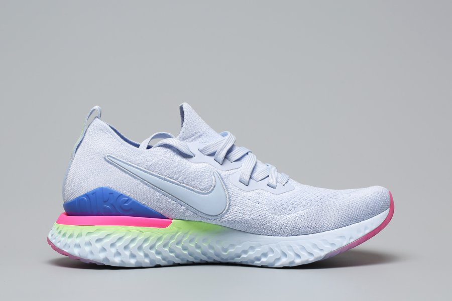 Reworked for improved performance and style, highlights of the Nike Epic React Flyknit 2 Blue Sapphire Lime Blast Hyper Pink Blue Tint include a brand new Flyknit weave pattern which improves support and flexibility, a lower heel cage, and a larger, more prominent Swoosh logo. Of course, as its name suggest, this sneaker sits atop a full length React midsole for additional comfort and a smoother stride.