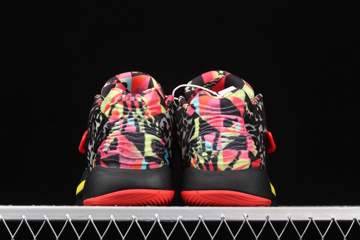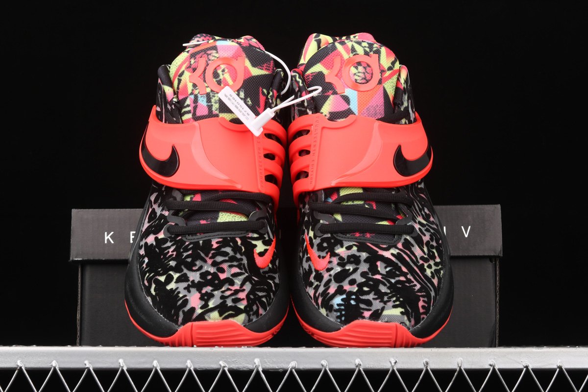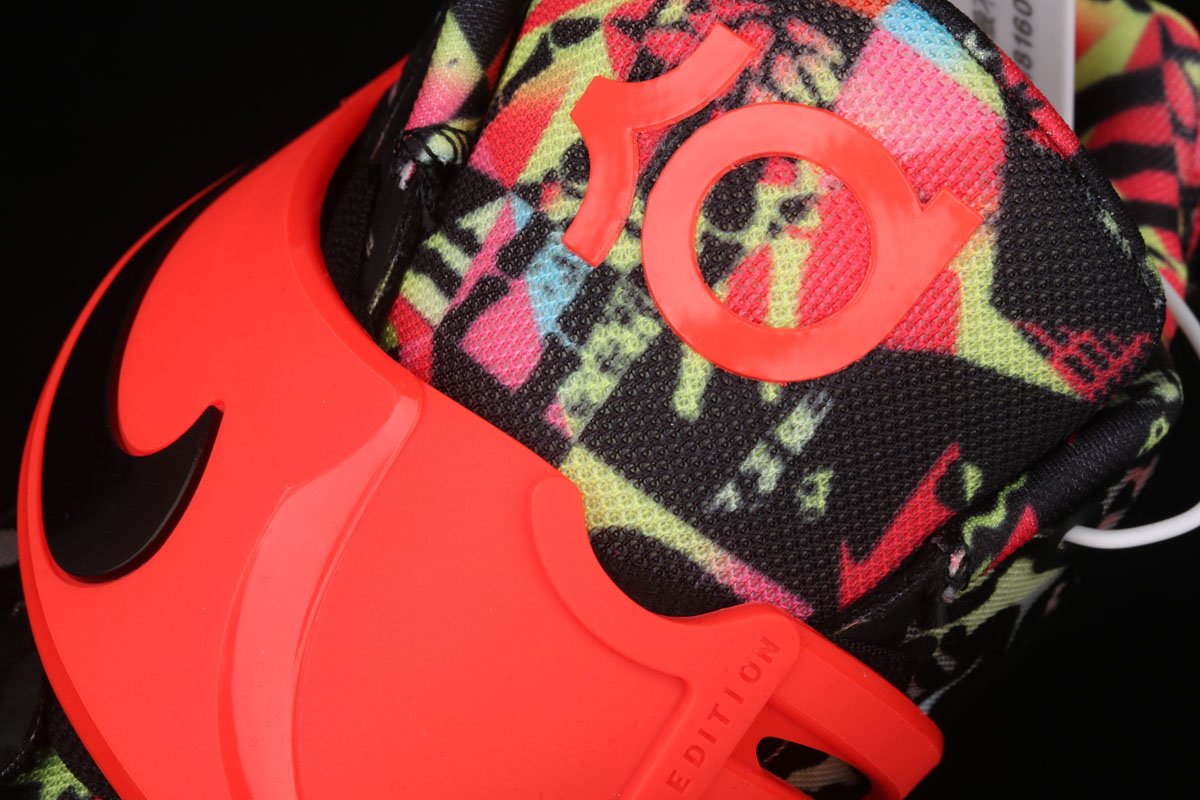 Designed in celebration of Kyrie Irving and Kevin Durant’s bond on and off the court, this variation of Durant’s signature model actually takes cues from the Nike Kyrie 1 “Dream.” Overall, pops of bright crimson, blue and yellow tones are scattered across the intricately patterned upper, while a tonal mid-foot strap, followed by a black midsole and crimson rubber outsole rounds out the profile.