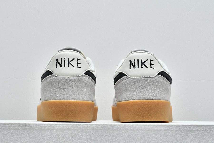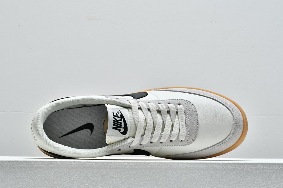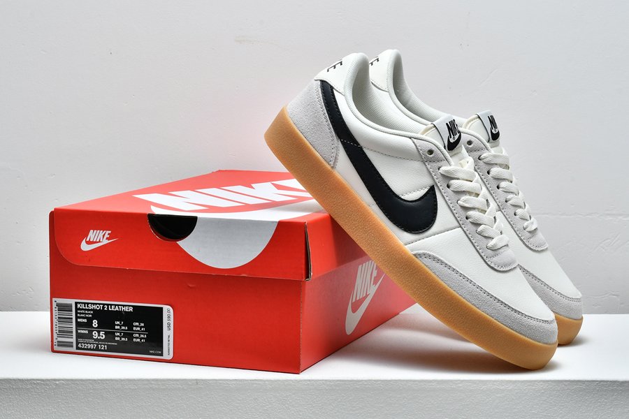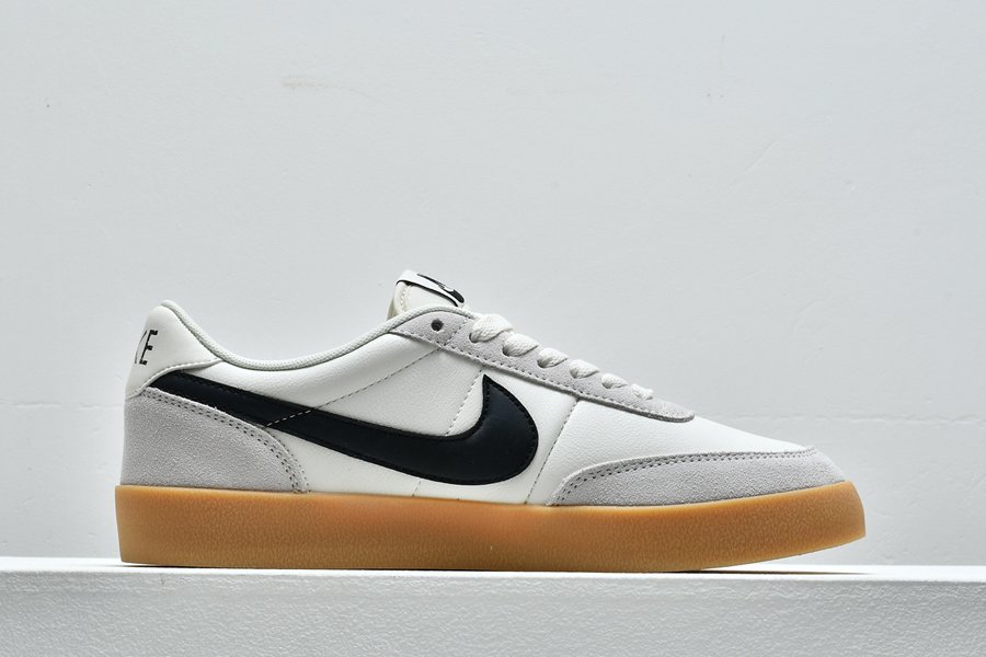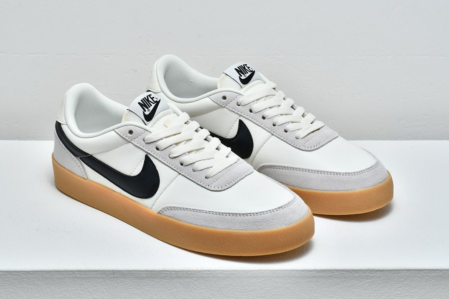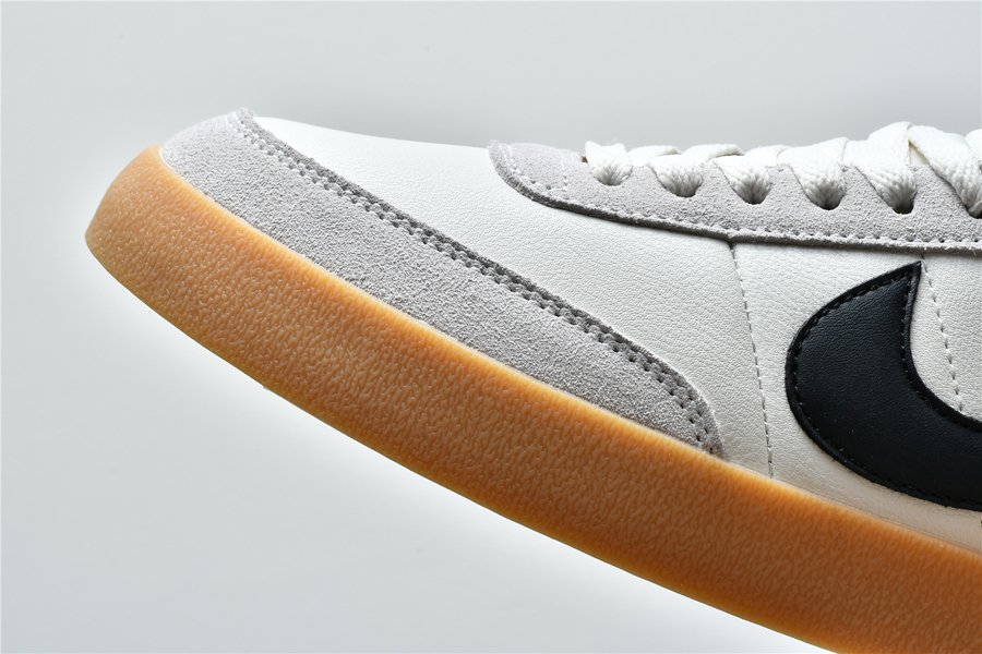 The Nike Killshot 2 Leather “Sail/Black” is a reinterpretation of ’70s-style performance tennis silhouettes with updated materials and footwear technology. Highly versatile both in terms of its easy-to-wear color scheme and always-in-style silhouette, the Killshot 2 is an essential for anyone seeking an understated pair of shoes. The upper features Sail white leather on the toe, mid-panel, and collar. Contrasting light grey suede overlays dot the forefoot and heel. A buttery smooth black leather Swoosh appears on the mid-panel. Throwback inspired Nike branding is found on both the tongue and heel tab. The look is finished off with a vulcanized gum sole for a decidedly nostalgic aesthetic.