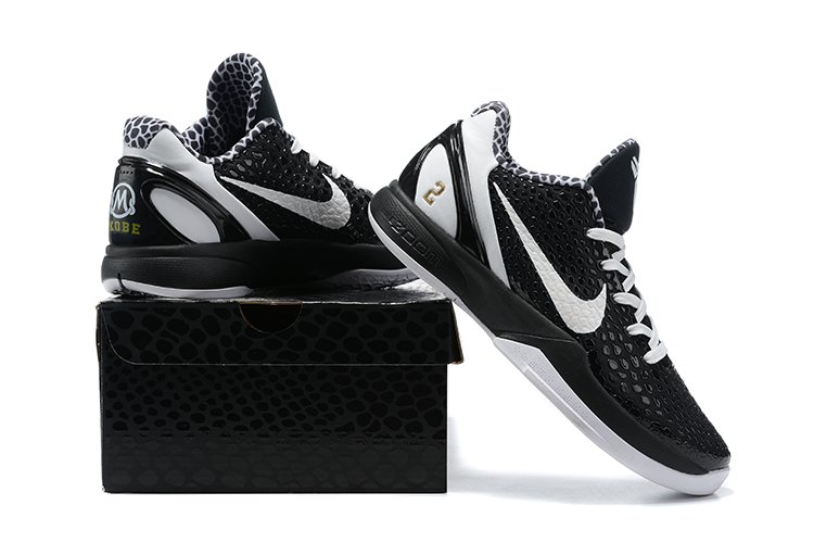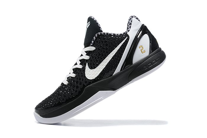 Dressed in a Black, White, and Metallic Gold color scheme. This Nike Kobe 6 Protro features a Black snakeskin textured upper with White laces, Swooshes, tongue branding, heels, and rubber outsole. The snakeskin print is also used on the inner lining. Highlighting the shoe is the Mamba and Mambacita Sports Foundation logo on the heel, along with Kobe and Gigi’s name printed on the left and right shoe, respectively. Gigi’s number “2” is stamped in Gold on the lateral heel completes the design.