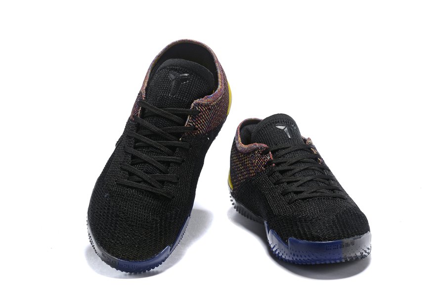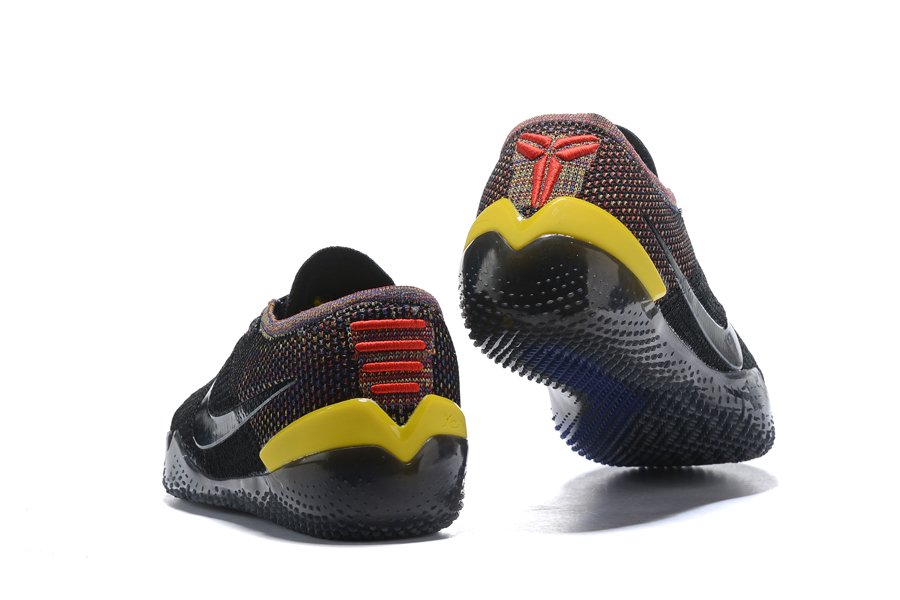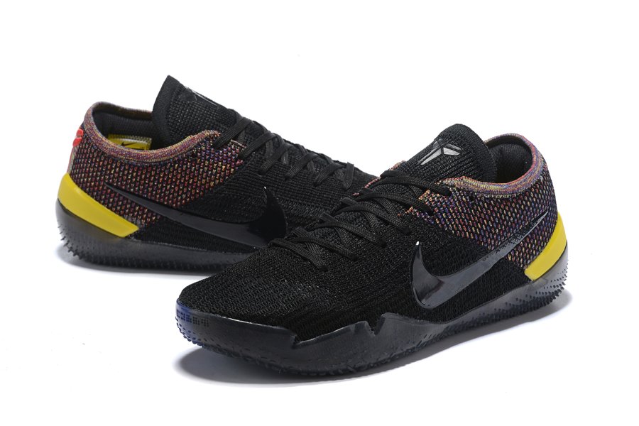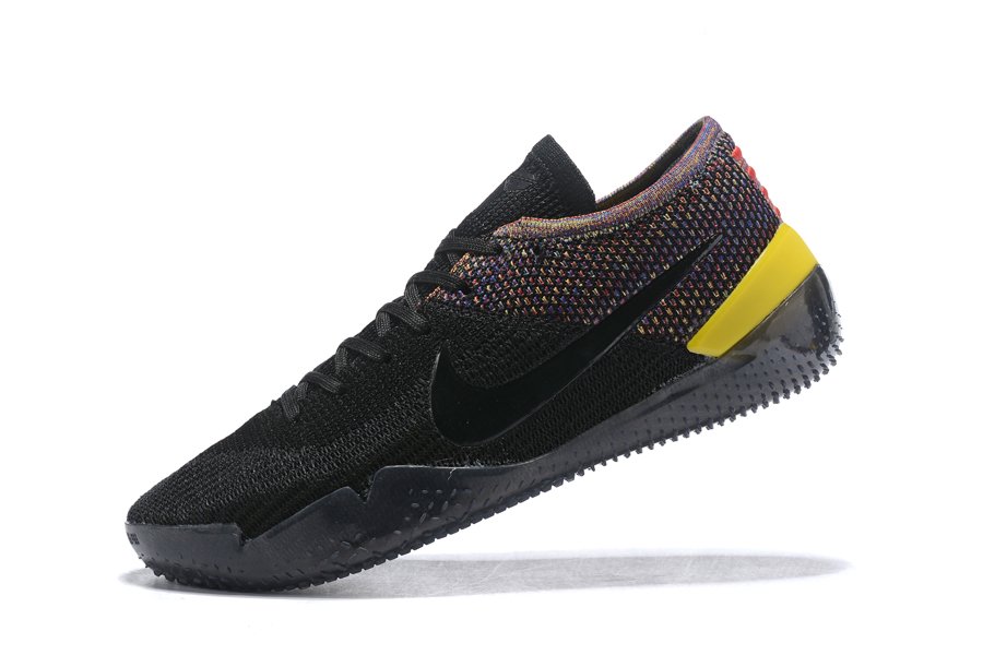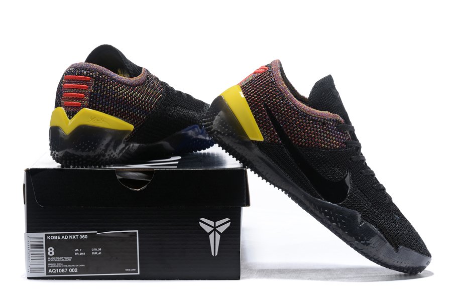 The Nike Kobe A.D. NXT 360 low-top features a black-based colorway featuring multicolor detailing along the collar and heel. A little Lakers flavor is delivered in the form of a bold yellow counter. The shoe sits atop a translucent rubber sole.