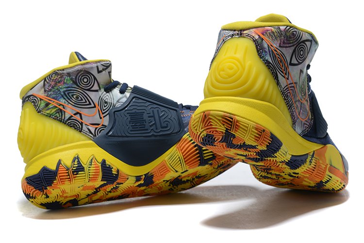 Taipei is just one of the Far Eastern cities that have propped up Kyrie’s meteoric rise to superstardom in Asia. In fact, the capital of Taiwan is one of the lucky cities to be included in Kyrie Irving’s “Story Of 11” series, a distinguished collection comprised of bold colorways and patterns representing each major epicenter of hoops. This homage to Taipei features a rich navy blue upper with a vibrant yellow, while hits of orange are sprinkled on the logos and the camo-style rubber outsole of the newly unveiled Kyrie 6. Seen on the ankle paneling is imagery of the famed Taipei fireworks display for New Year’s, which quite frankly blows out the competition when it comes to competing January 1st celebrations around the globe.