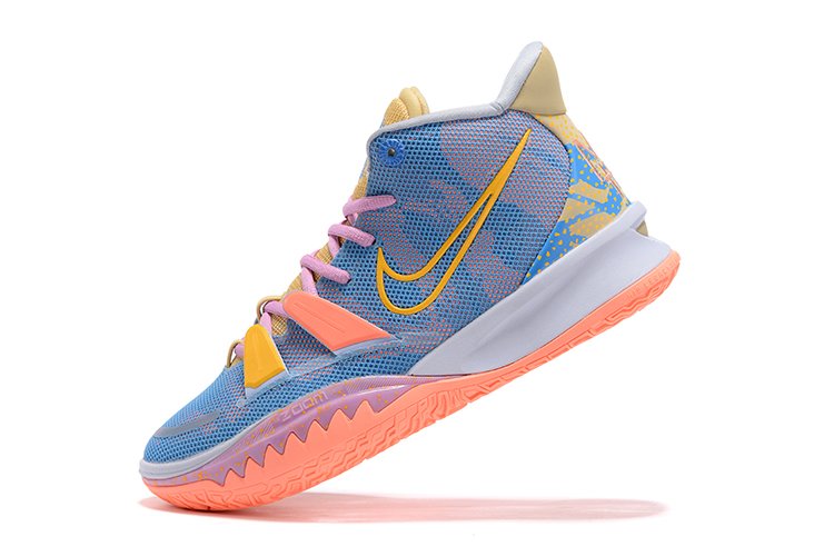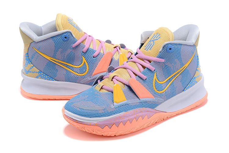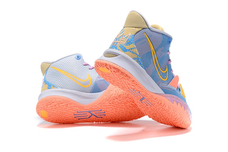 The Nike Kyrie 7 “Expressions” is inspired by Kyrie’s appreciation of art and the freedom of expression. A much brighter color palette is evident, with a pink pastel sole and vivid brush-stroke patterns on the upper. The choice of tan on the tongue is inspired by classic art canvases.