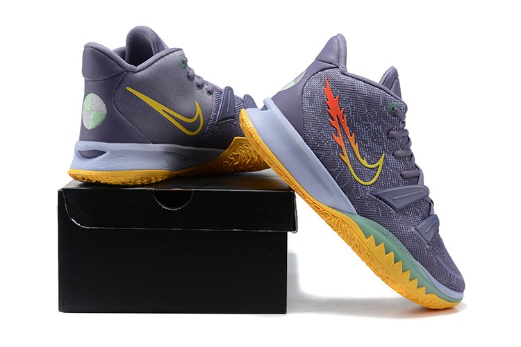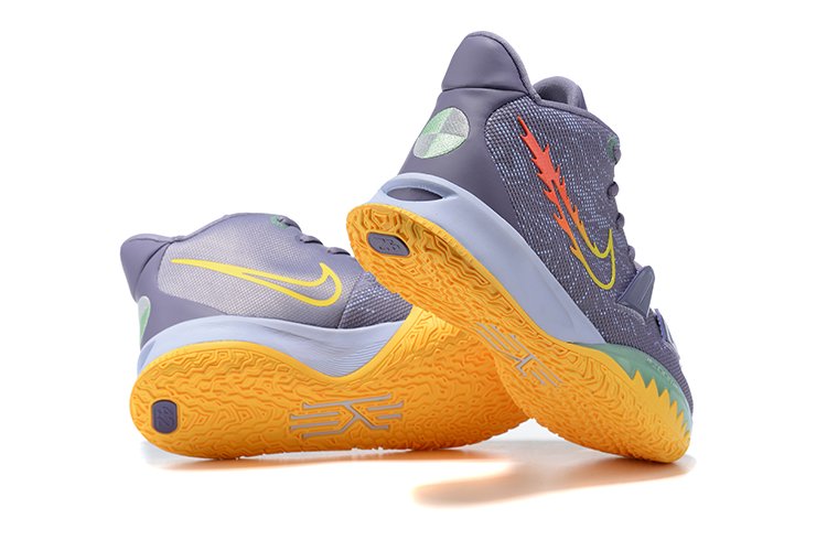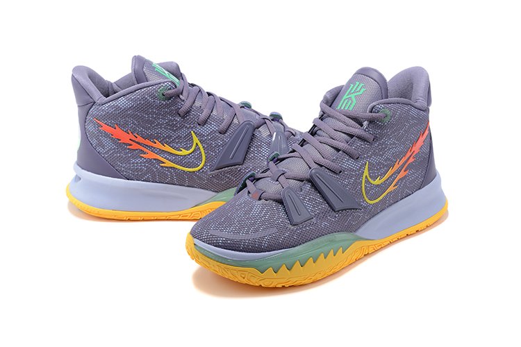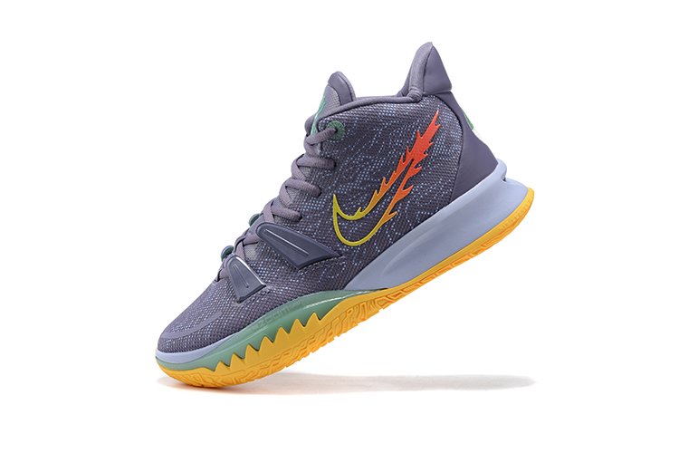 This Nike Kyrie 7 “Flame Swoosh Logos” comes dressed in a Daybreak, Citron Pulse, Siren Red, and Ghost color combination. Featuring Grey on the upper while Yellow outlines the Swoosh on the medial and on the lateral side, we have flames with a gradient finish. Next, pastel Green hits the branding, top eyelet, insoles, and a section of the midsole. Finally, we have a unique circular design on the heel and a Yellow rubber outsole finishes the look.