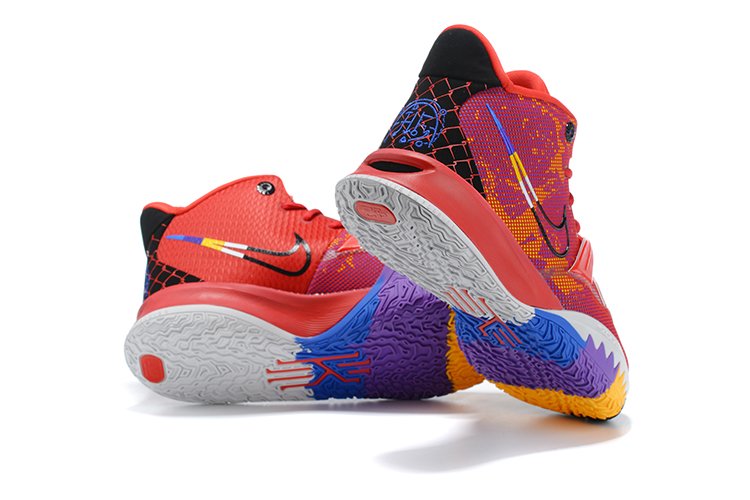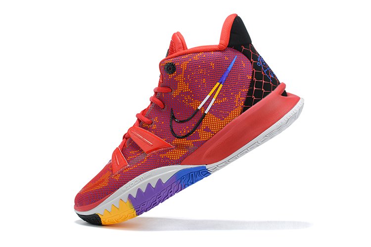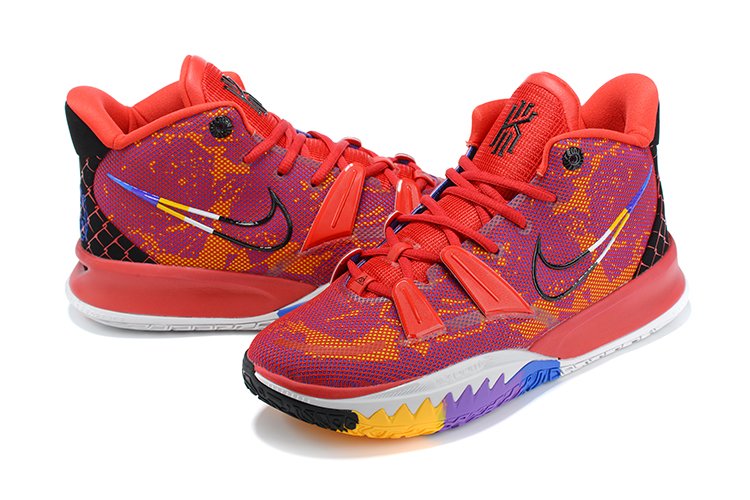 The Nike Kyrie 7 Icons of Sport pays homage to the heroes, mentors, and muses of the hardwood that have inspired Kyrie. As a kid, Kyrie Irving’s favorite ballplayer was his father, Drederick – but as he grew up, his list of hoop influences grew. The hits of Red, Purple, Gold and Blue represent a few of Irving’s all-time favorite players and coaches. The heel graphic represents Irving’s game-winning championship shot from 2016.