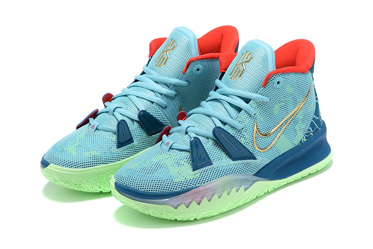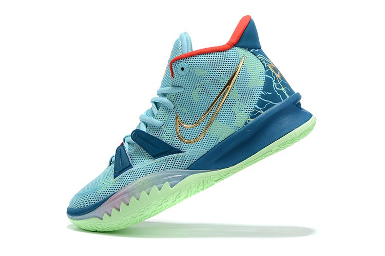 The Nike Kyrie 7 “Special FX” focuses on Kyrie’s love of film-making. His first venture onto the big-screen came by way of Uncle Drew, which was originally derived from the Nets star’s role in the unforgettable Pepsi ads. To communicate the concept, Nike represents a green screen with the choice of sole color, while the upper is designed with cinematographic, film-like layers. A gold film camera logo is placed on the heel, as is the initials “HF” for Happy Family.