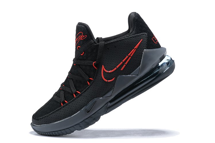 The Nike LeBron 17 Low “Bred” is covered in an official mix of Black, University Red, and Dark Grey. The majority of the shoe is colored in black, while red is implemented as the contrasting hue noted on the branded areas and eyelets. Finally, a dark grey midsole and rubber outsole which houses a tinted Air Max sole unit round out the overall design.