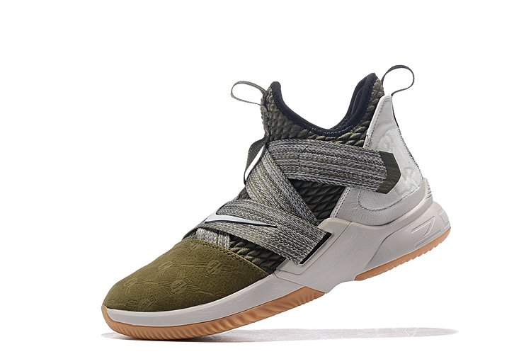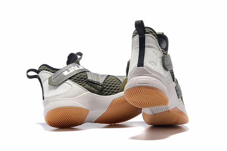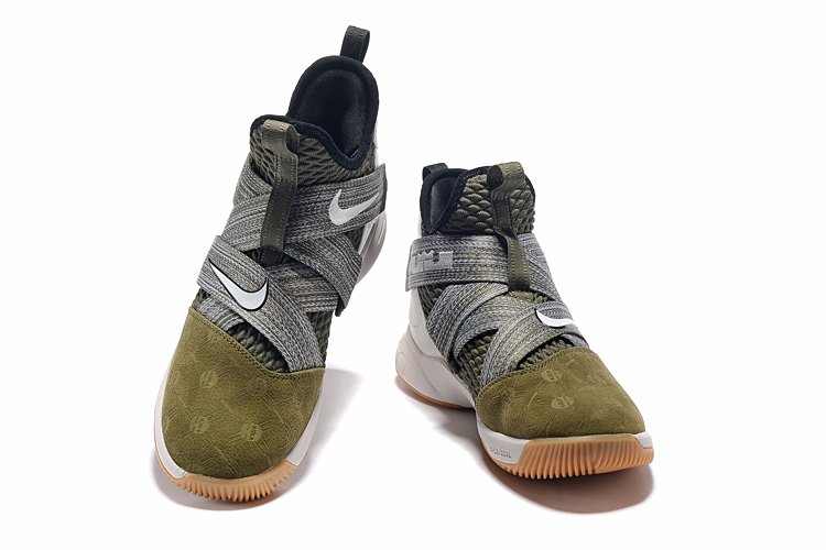 This time around the King’s signature shoe takes on earthly greens and olives for its Battleknit upper and straps while the toe box features military-inspired logos embossed throughout. Finally embroidered Swooshes adorn the straps while an off-white midsole and gum sole round out the shoe’s overall look.