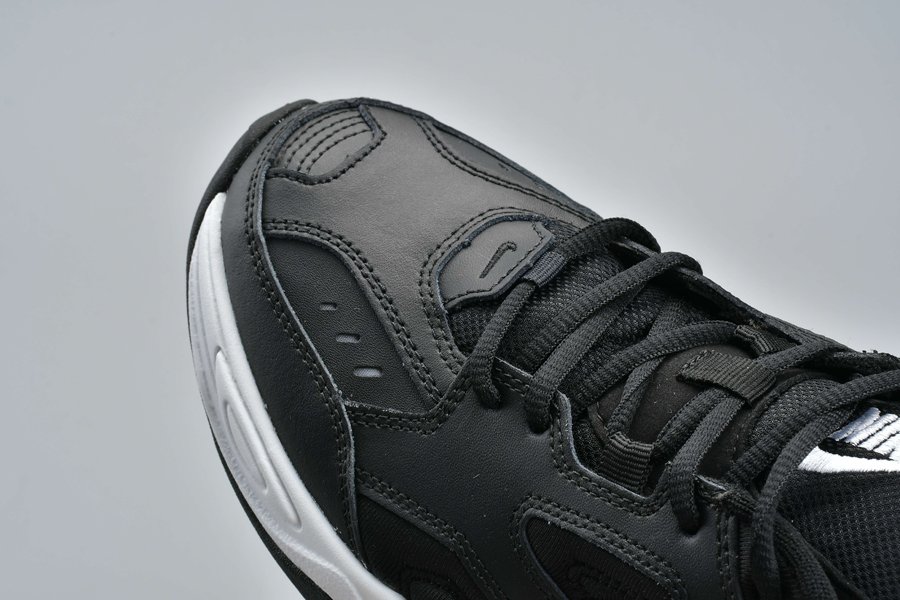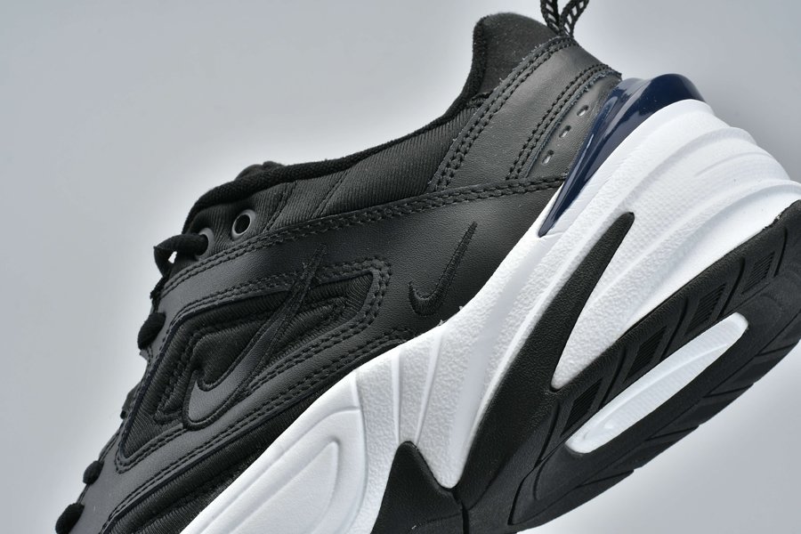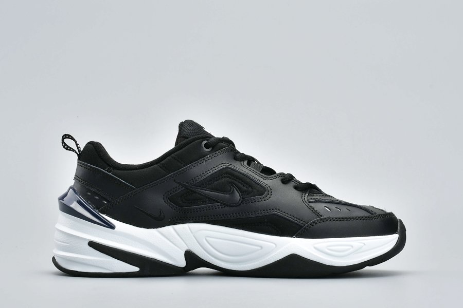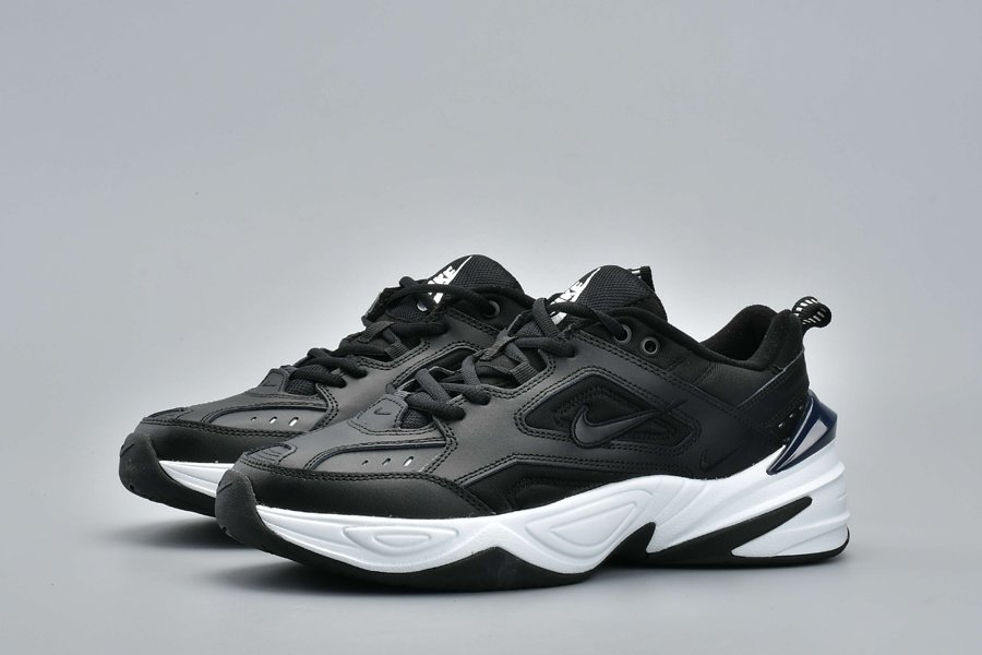 The new colorway features a tonal black upper with layered leather and synthetic paneling, while a bulky white midsole and black outsole lifted from the legendary Air Monarch provide contrast. You can’t have a true modern-day dad shoe without a little touch of flair however, and this Tekno’s flair arries via its obsidian blue plastic heel piece, white Nike logo hit on the tongue, and small white notches on the heel tab.