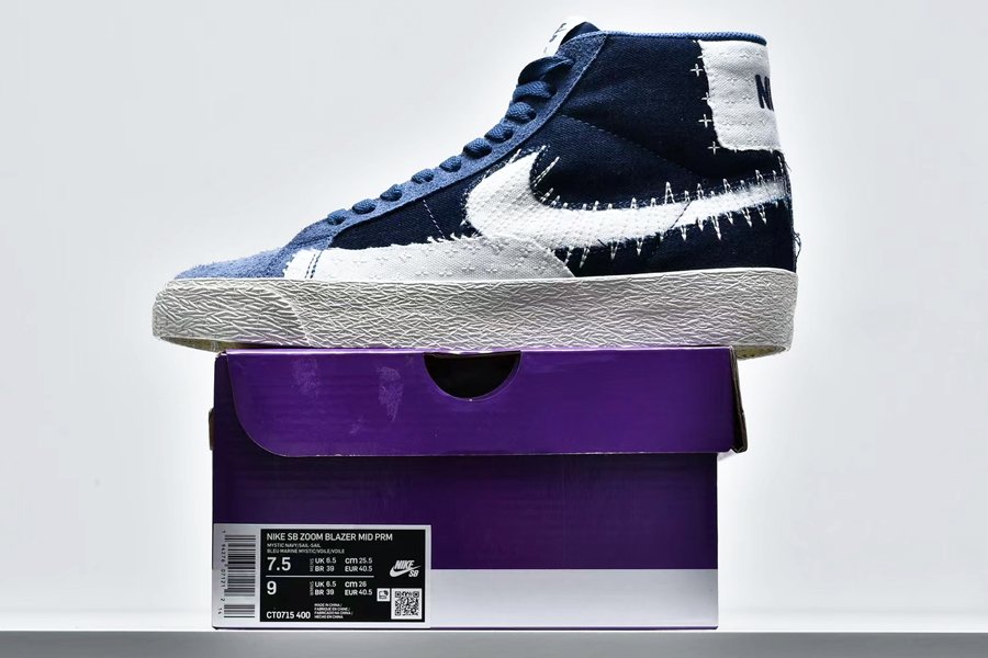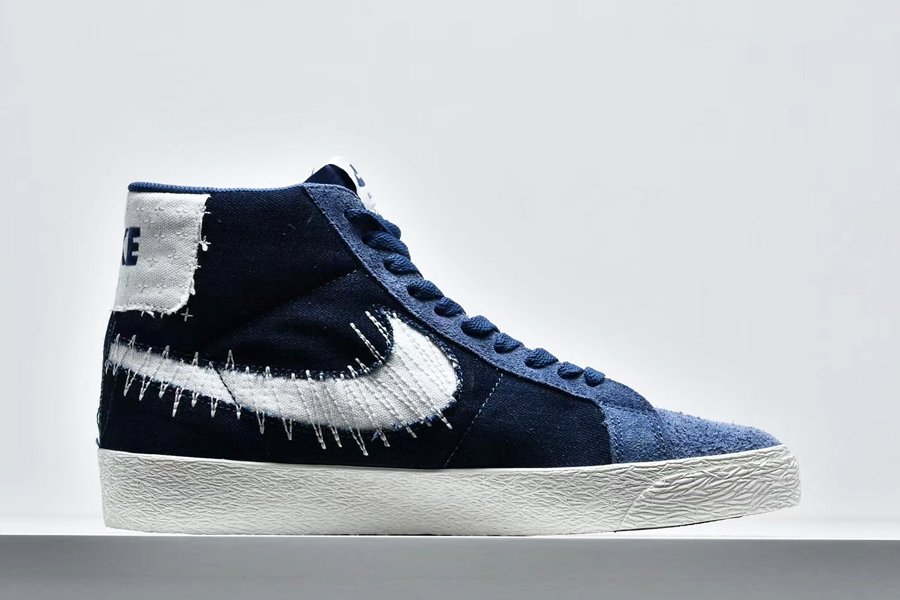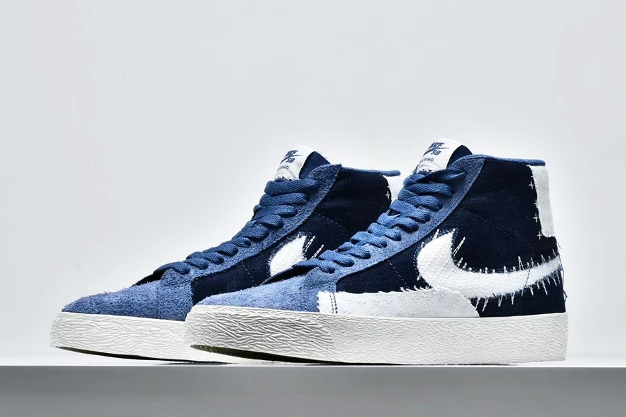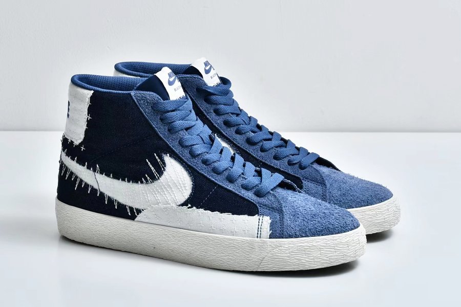 The Nike SB Blazer Mid Premium “Sashiko” is an exclusive variation of the timeless runner and for those of you unaware, Sashiko is a form of decorative reinforcement stitching from Japan. It also translates to “little stabs.” This rendition of the SB Blazer flaunts light navy textile uppers with Sail DIY-style paneling covered in Sashiko-style stitching, notably its Swooshes and heel tabs. Finally, a sail midsole and gum rubber outsole tops off the style.