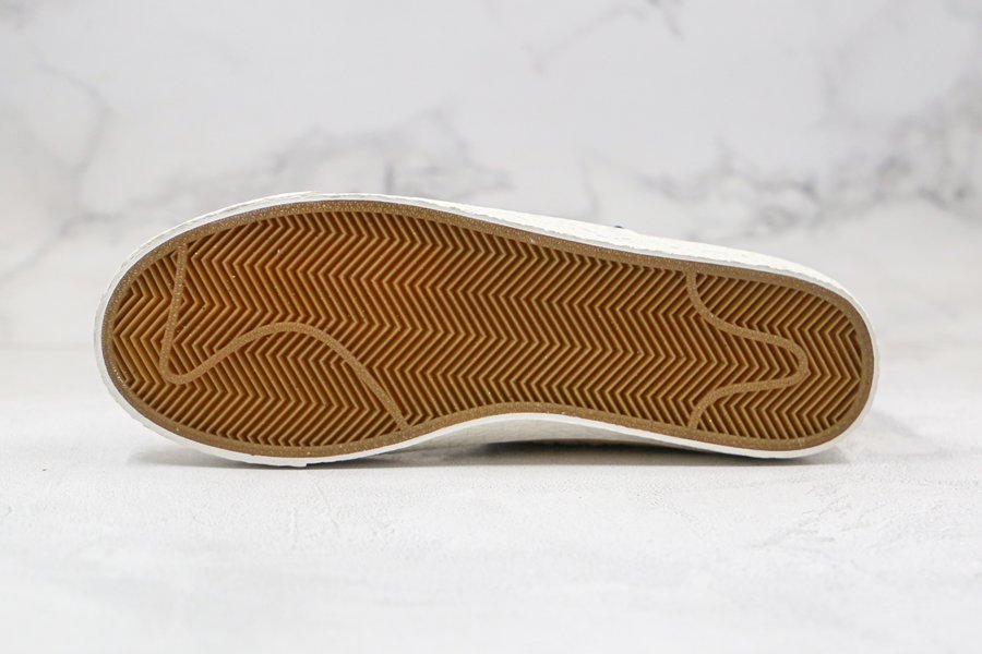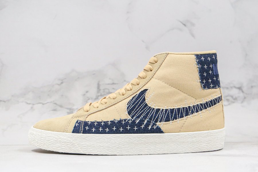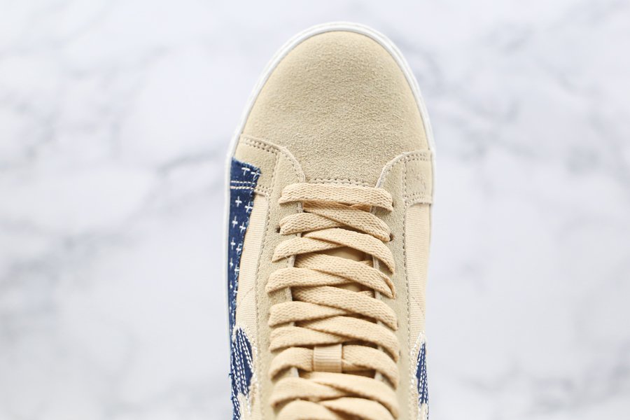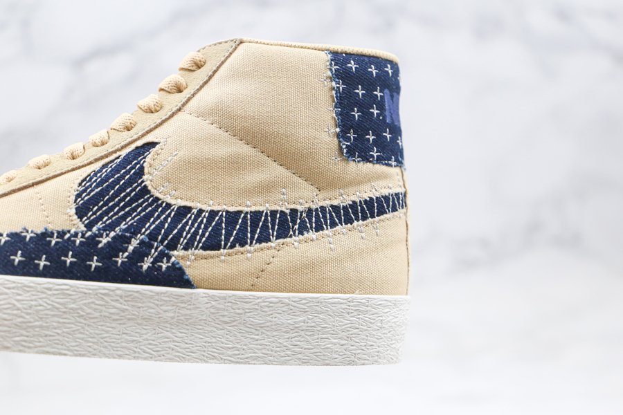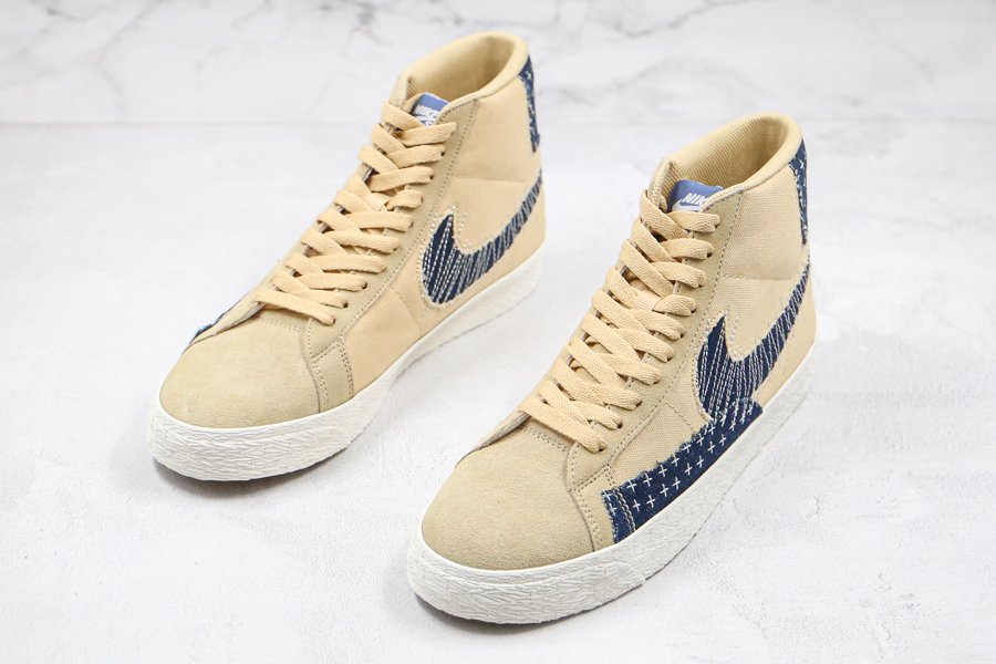 The sneaker is covered in a Sesame canvas construction on the upper along with a hairy suede in the same palette landing on the toe. For contrast we see intricate navy denim patchwork on the Swooshes, heel tab, forefoot, and tongues, Down below a Sail rubber midsole and gum rubber bottoms cap things off.