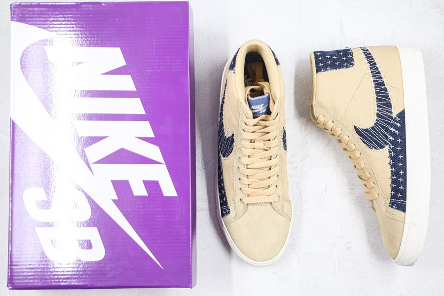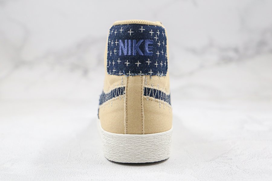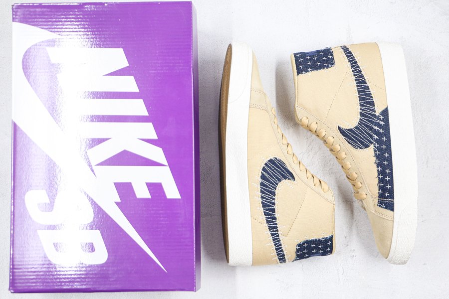 The sneaker is covered in a Sesame canvas construction on the upper along with a hairy suede in the same palette landing on the toe. For contrast we see intricate navy denim patchwork on the Swooshes, heel tab, forefoot, and tongues, Down below a Sail rubber midsole and gum rubber bottoms cap things off.