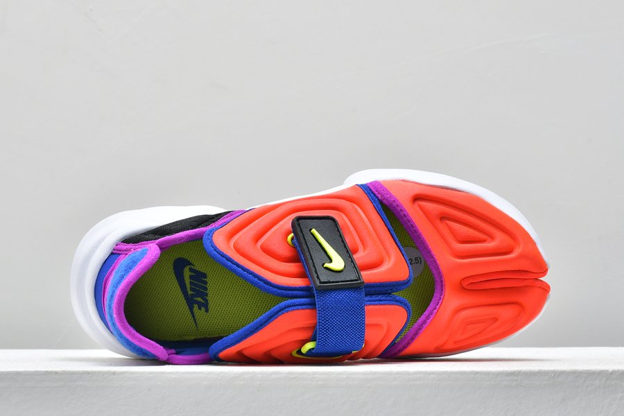 Blending features from 2 classic ’90s styles, the Nike Aqua Rift takes retro beach style into the present with a futuristic silhouette and an exaggerated stance. Featuring the iconic split toe from Nike Aqua Gear, the shoe works with the natural motion of your foot. Padding on the upper keeps it comfortable around town.