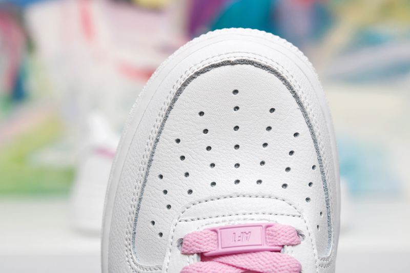 Pink accents can be seen on the sidewalls, dubbed “Psychic Pink”, taking over the Swoosh detailing, Nike Air branding on the heel and tongue as well as on the lace unit. A matching pink lace tag can also be seen at the base of the lace unit, labelling the well known sneaker as Air Force 1.