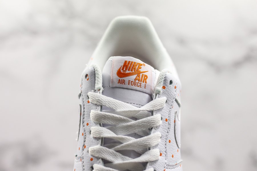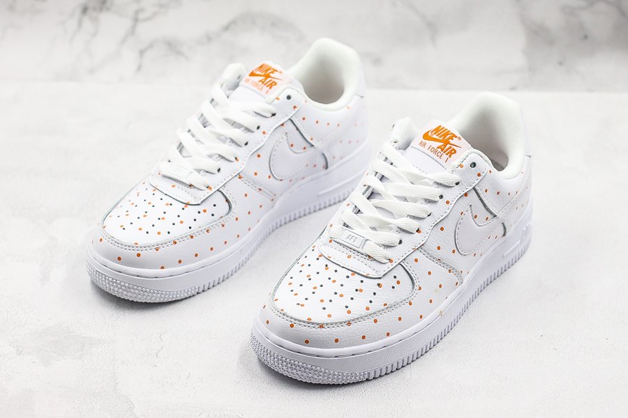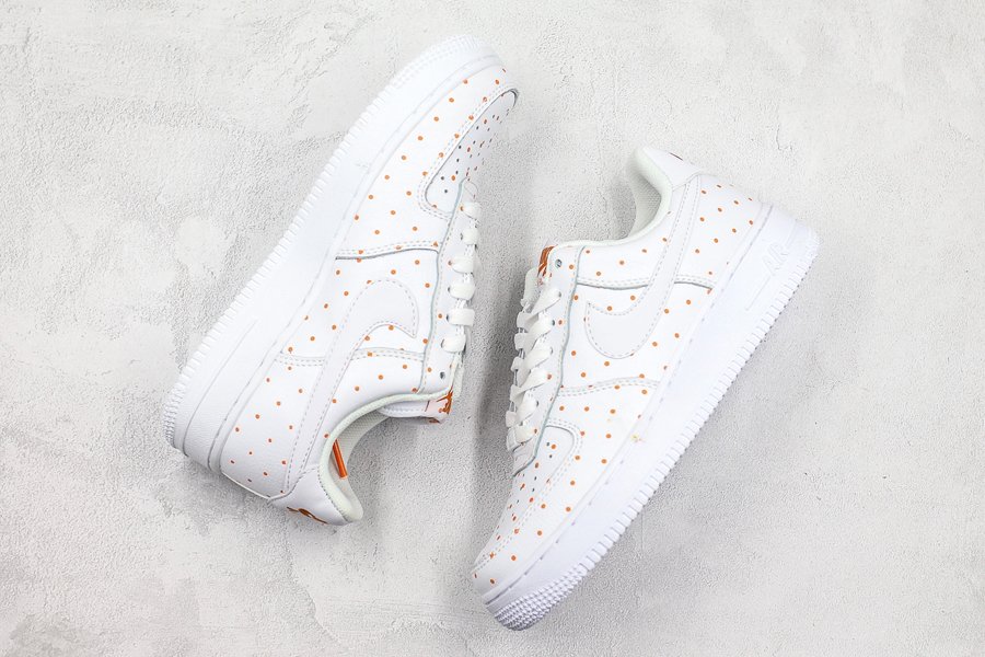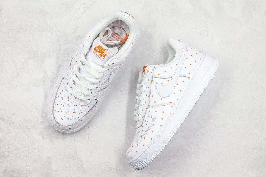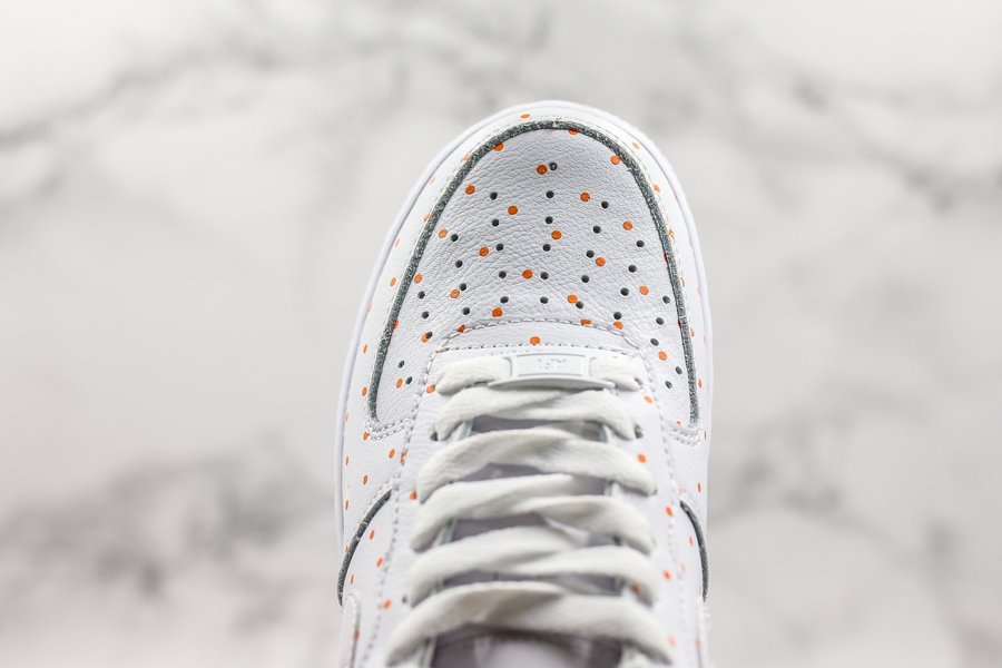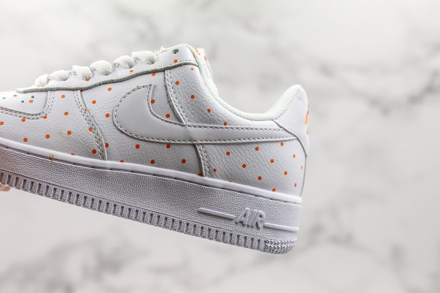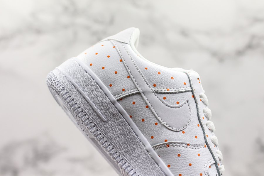 Made of leather and dipped entirely in white, the eye-catching dots are colored in orange, while more contrasting details are seen on the tongue and heel tab via branding. Finally, a matching white rubber sole completes the design altogether.