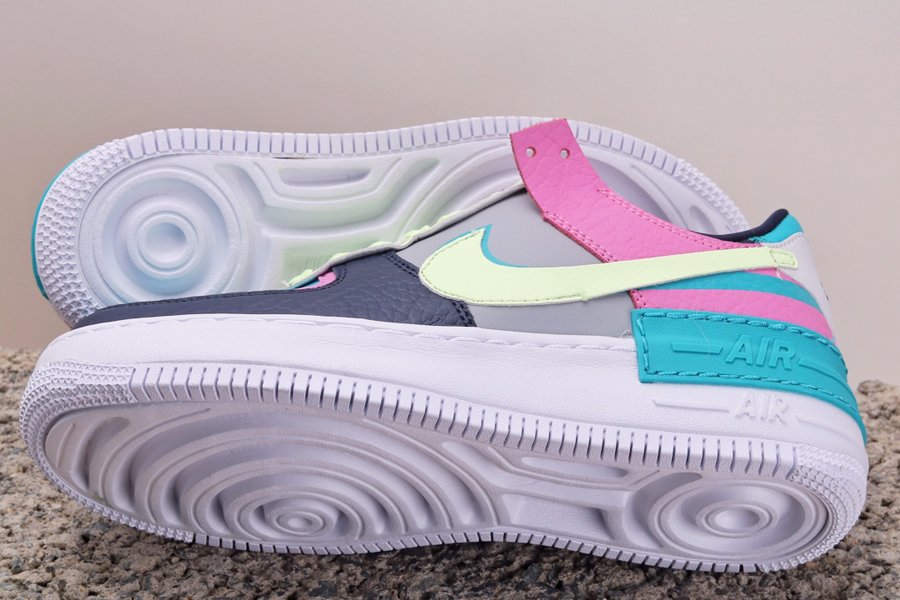 Designed exclusively for the ladies, the Nike Air Force 1 Shadow is a new iteration of the classic silhouette from the Swoosh. Playing off the “shadow” name, this new version of the Air Force 1 is highlighted by a “double” them that includes double Swooshes, eyestays, heel tabs, tongue tags, midsole overlays, and insole branding. This pair takes on a Spring/Easter-inspired look with pastel tones such as pink, green, blue, grey, and black.