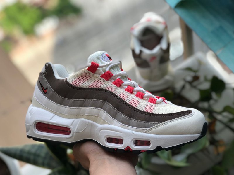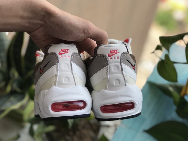 This Nike Air Max 95 is a women’s exclusive release that comes in Sail, Ember Glow, Phantom and Light Iron Ore color combination. As you can see, most of the shades cover the base which runs through the ribbing. Sail is then used across the mesh which exposes the Ember Glow eyelets. The Red hue is also spotted inside the Air Max Unit and across the Swoosh. Finishing the look is Black that runs across the sole.