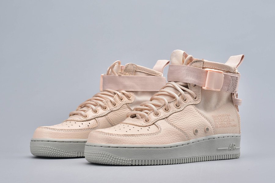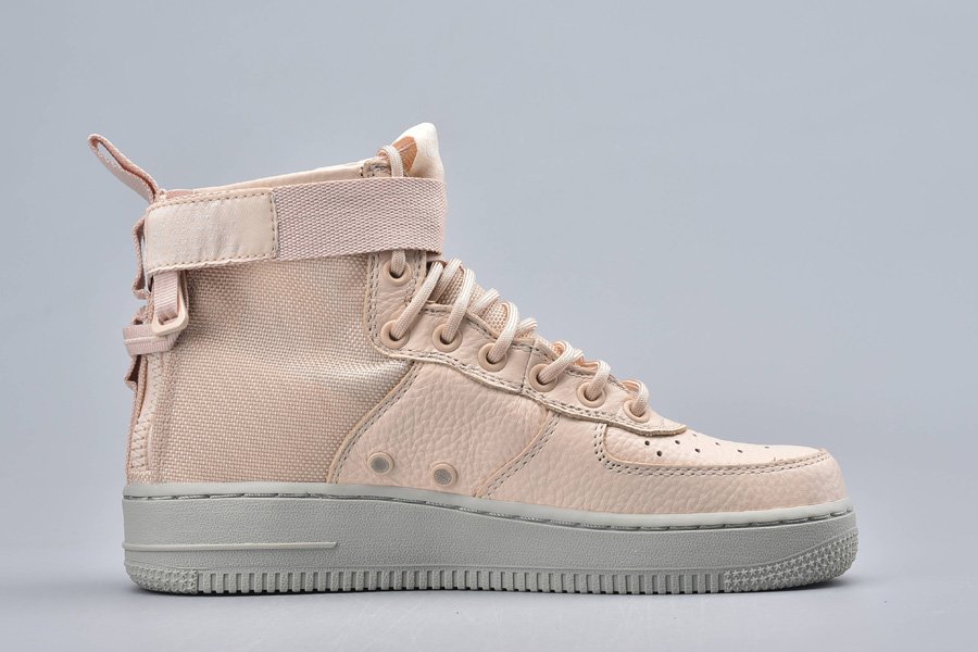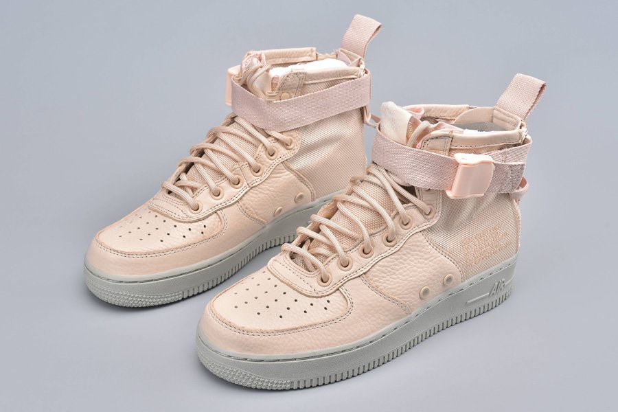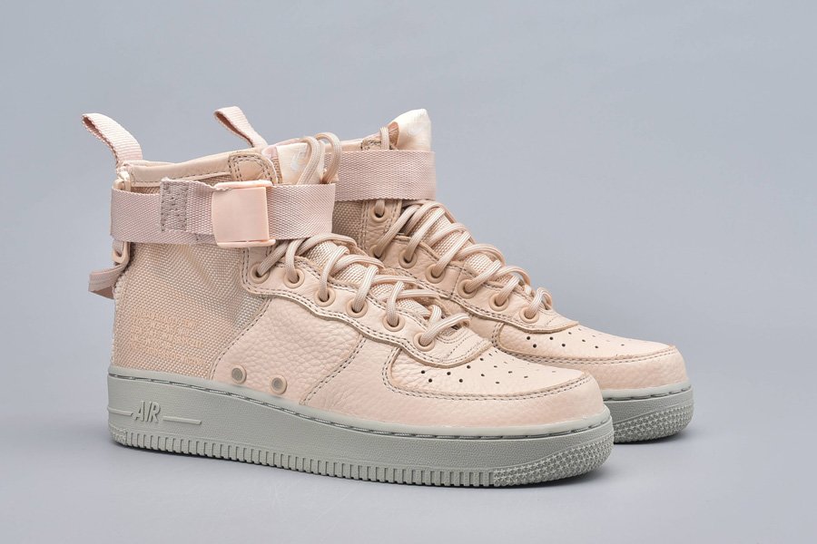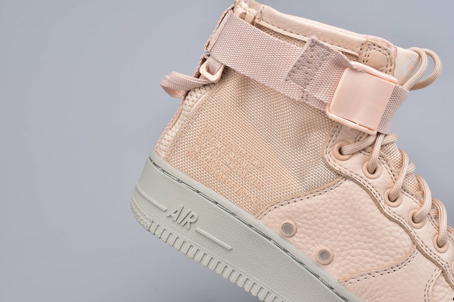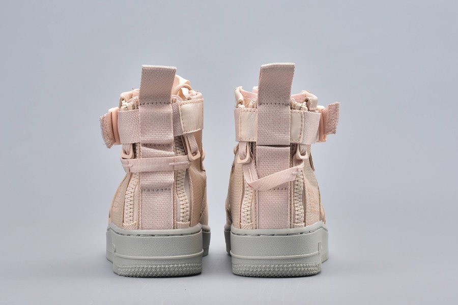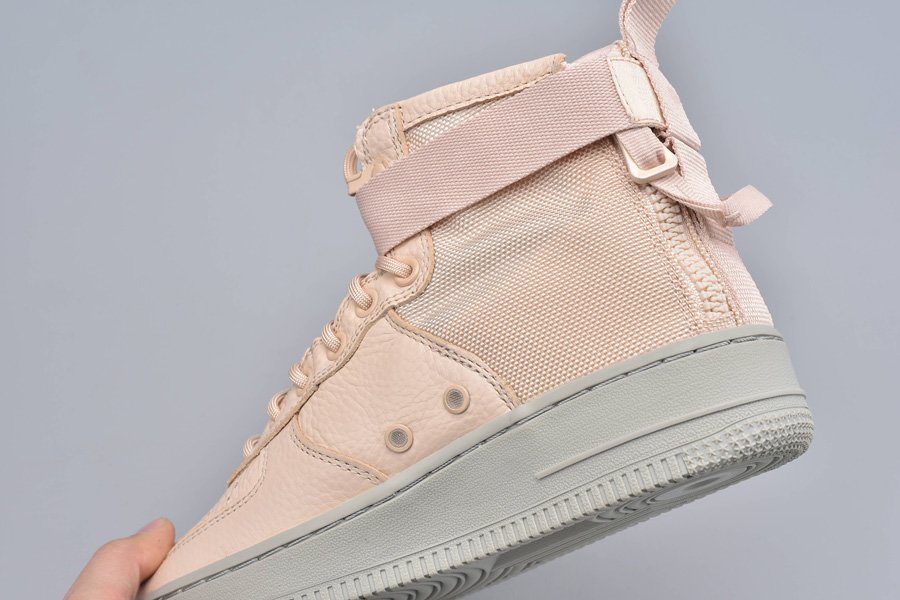 Wearing a full Orange Quartz hues plot that could even go as Light Orange or Pink. Developed with a blend of cowhide and ballistic nylon that sits on a full Gray Air Force 1 elastic sole.