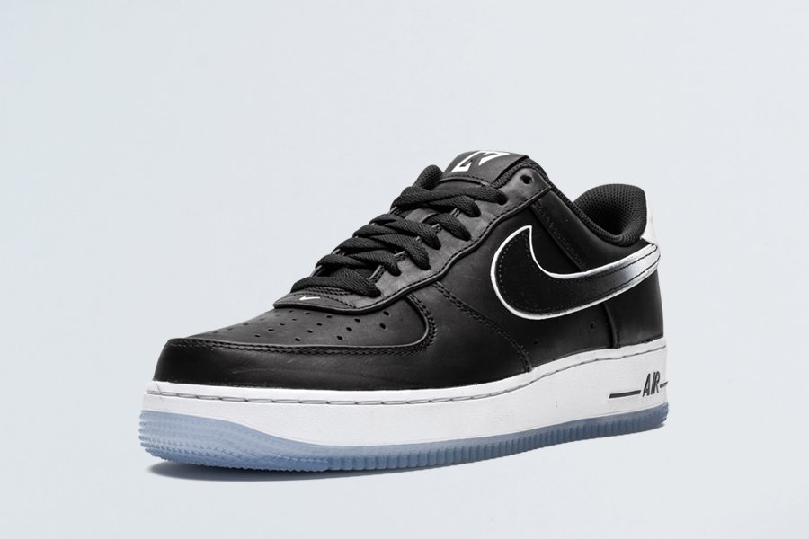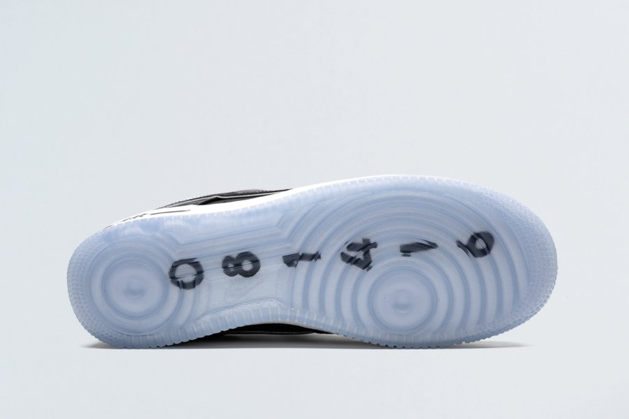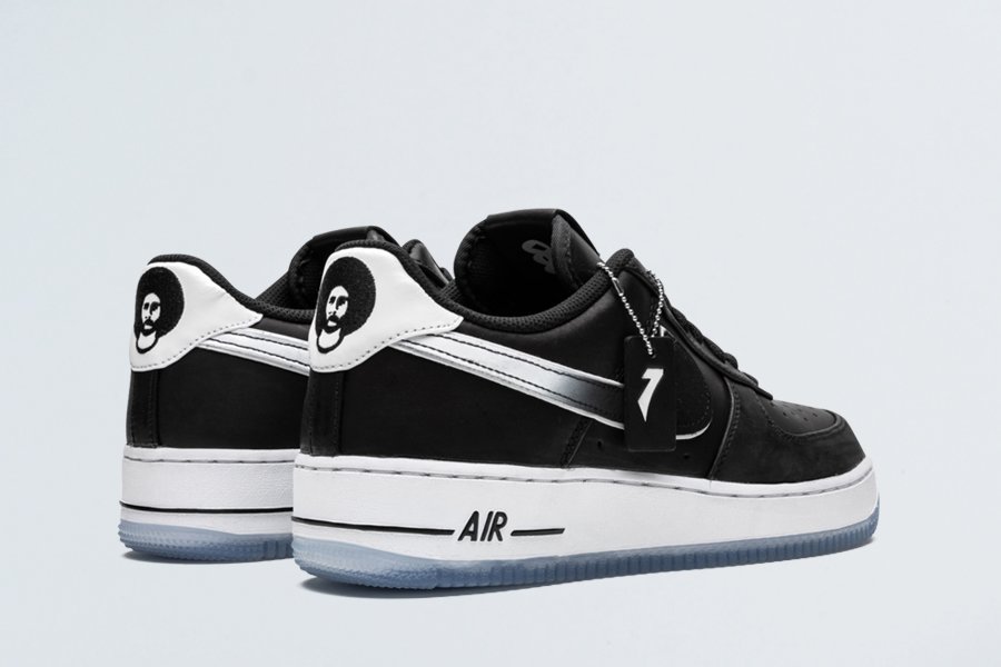 The sleek look of the collaborative Air Force 1 is highlighted by a black leather base that covers the entire upper. A gradient black-to-white leather Swoosh contrasts the muted appearance. An embroidered portrait of Kaepernick dons the white leather heel tab with a special “7” hang tag and branded tongue tab providing some of the signature flair the quarterback is known for. Finishing off this special collaboration is a white midsole that is contrasted by an icy translucent outsole featuring the date that Kaepernick took his first knee in a response to police brutality on “08/14/16.”