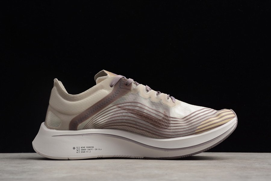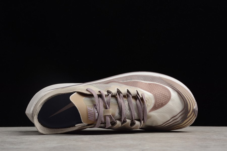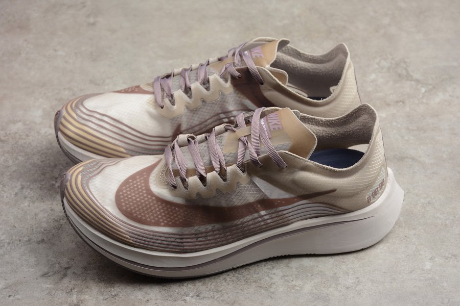 This Nike Zoom Fly SP pays tribute to the Chicago Marathon. A mixture of sand and light purple hues cover the sneaker’s translucent, stretch-woven upper that is both lightweight and breathable. A stopwatch timer graphic is seen on the heel and it’s also detailed by a two-tone sole to complete the style altogether.