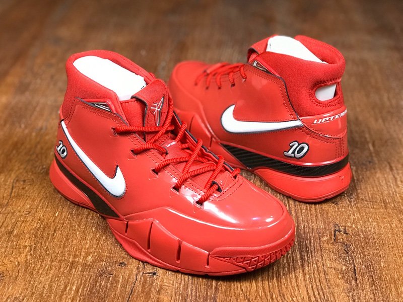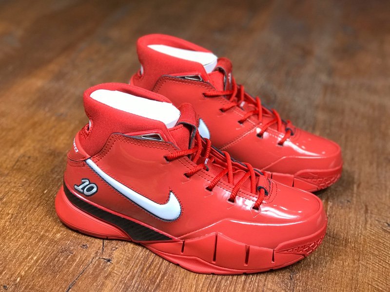 This Zoom Kobe 1 Protro ‘DeMar DeRozan’ PE features a red patent leather upper with a white Swoosh and a red outsole. It also comes with DeRozan’s #10 jersey number embroidered on the heel and ‘RAPTORS’ branding on the lace loop.