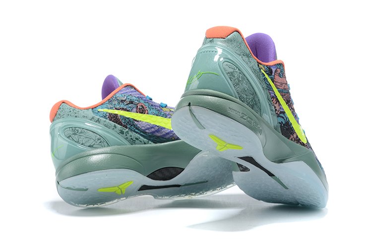 The Kobe Prelude 6 pays homage to the lights-out performance with art inspired from the streets of venice, laid over the mesh composite package and underneath the molded snake skin pattern, and serves as a thank you note to the city that he stands for.