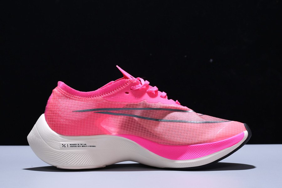 The running pack is made up of four silhouettes. First up is the Nike ZoomX Vaporfly NEXT%. Craft with Vaporweave, Nike’s new technology that’s lighter than Flyknit, the upper is breathable and absorbs less water from sweat or rain. Also, the sneaker is designed with 15% more ZoomX foam in the sole than previous iterations and new traction patterns to help athletes handle wet terrain better. Aesthetically, the sneaker is reminiscent of Off-White™ x Nike’s Zoom Fly “Tulip Pink” sneaker, featuring a bright pink upper and laces with a stacked cream sole and black Swoosh details on the lateral and toe vamp.