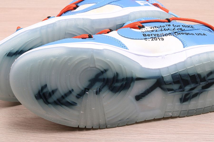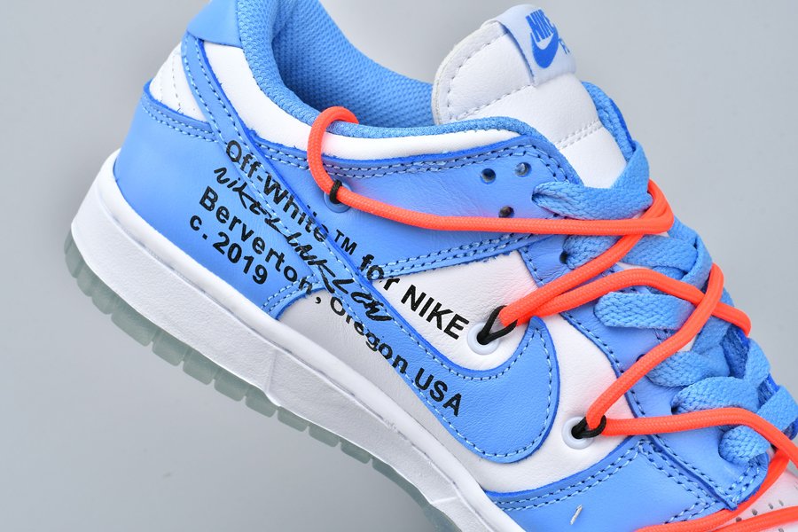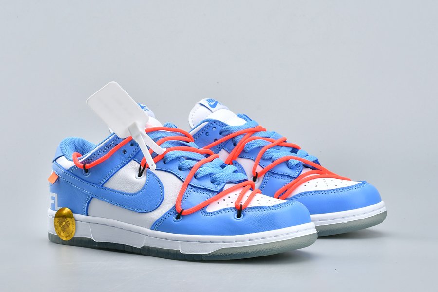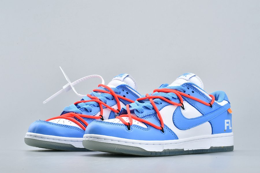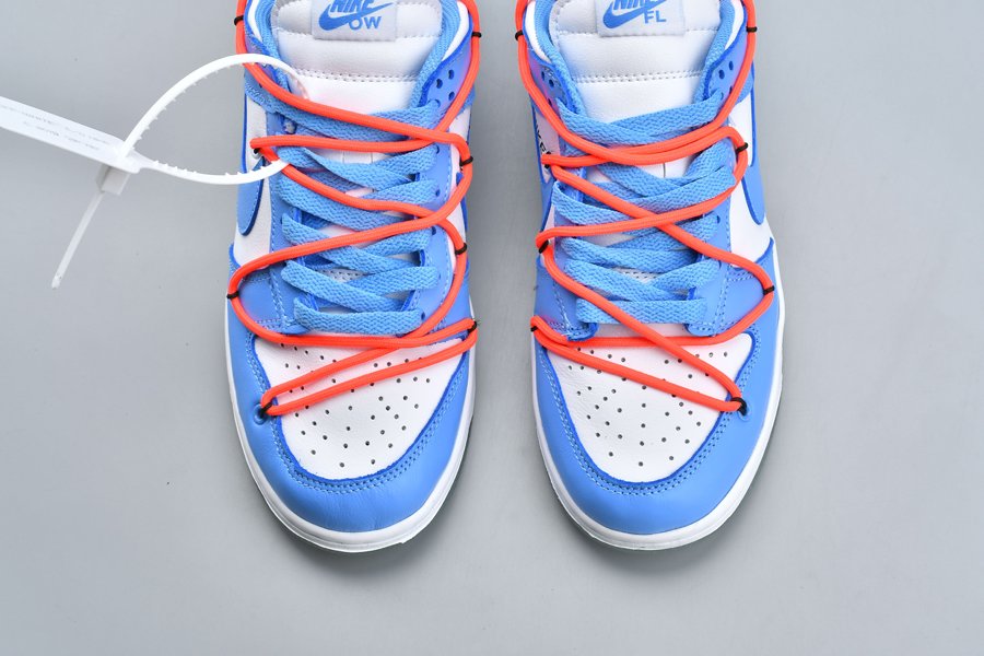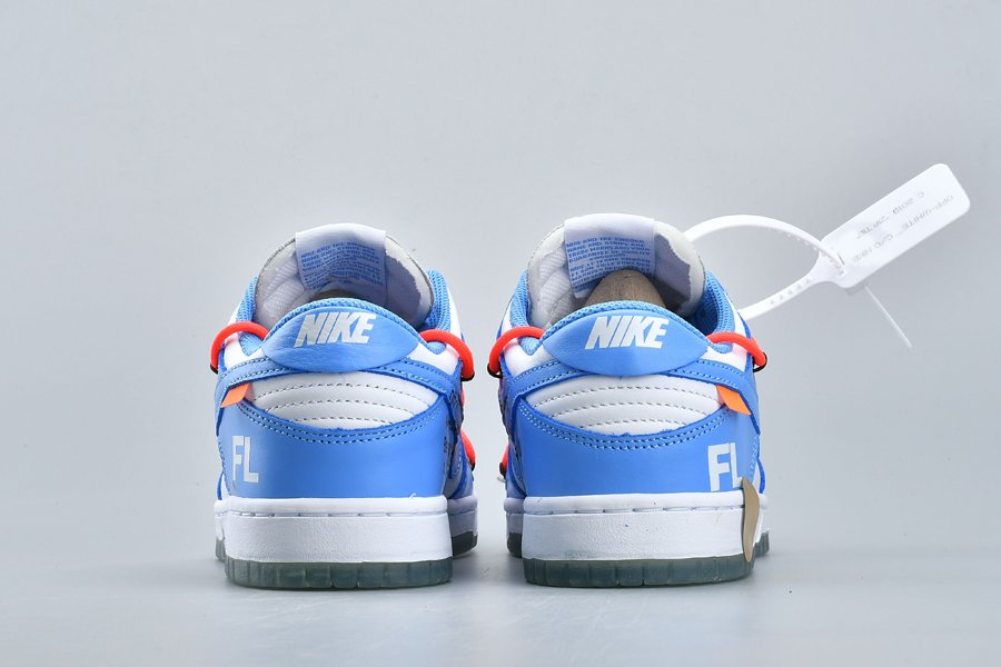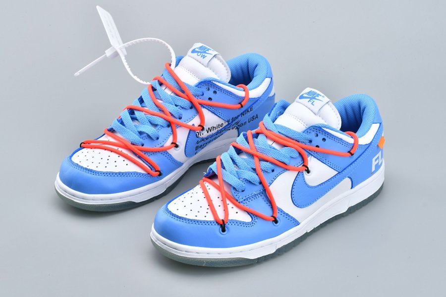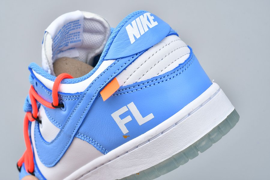 This Off-White x Futura x Nike Dunk Low is dressed in a UNC color scheme with Bright Orange laces. Details on the pair include the signature Off-White branding stamp on the side panel, the “SHOELACES” text on the laces, and most notable the new unique lacing system that extends on to the toe cap and collar of the shoe. Below you will find a translucent outsole with Futura’s signature, while “FL” branding is spotted on the lateral heel.