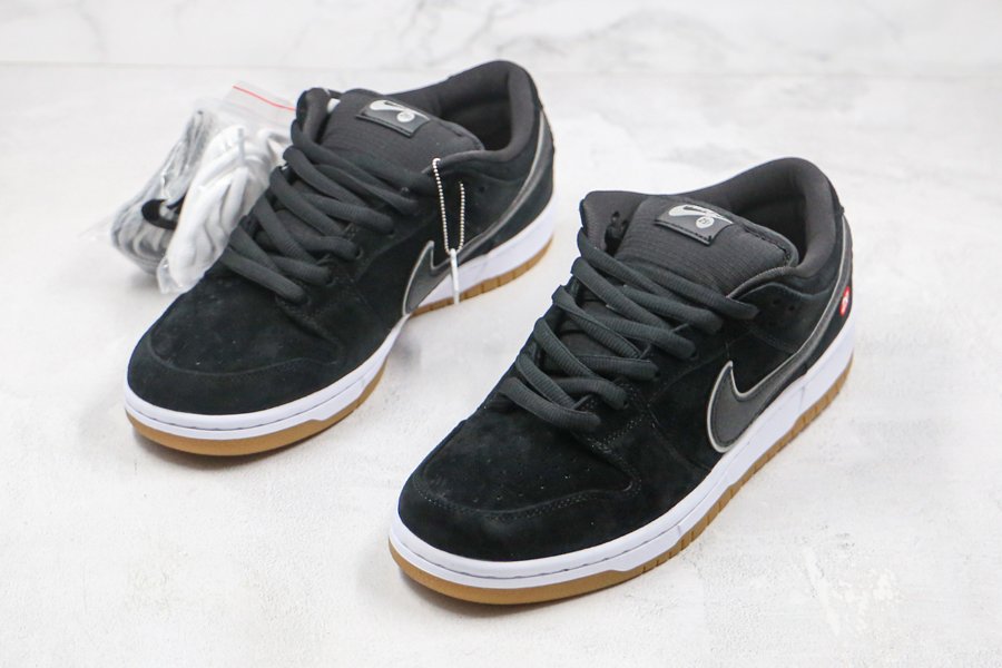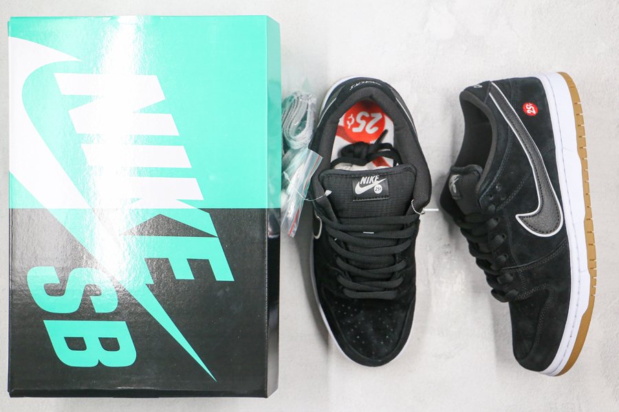 The Nike SB Dunk Low “Quartersnacks” features a simple design dressed in a black suede upper with grey finishes complimenting the design. Finished off by a contrasting white midsole, lining on the swoosh, and a gum sole, the sneaker is a great addition to the Nike SB Familia.