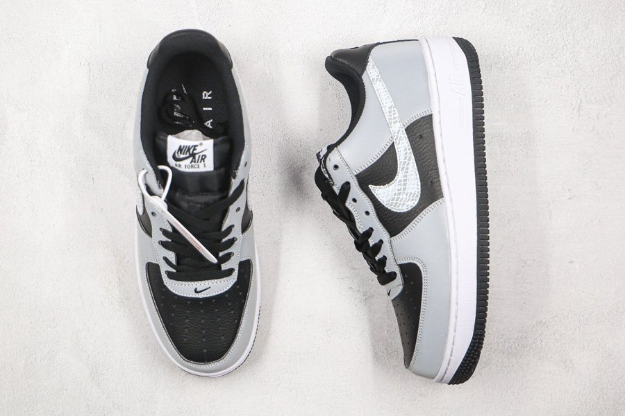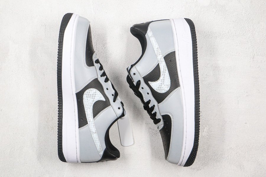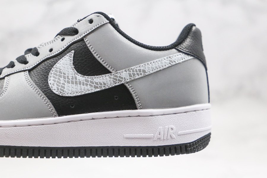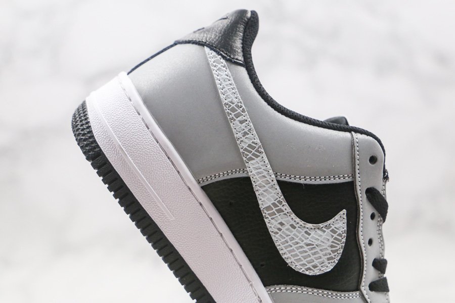 This Nike Air Force 1 Low B “3M Snake” features a black tumbled leather base with reflective overlays and a snakeskin-textured Swoosh logo. Flashy yet somehow understated at the same time, the sneaker also uses a mini Swoosh at the bottom of the eyestay. Lastly, the original 2001 version used purple threading for the Nike logo on the tongue label and heel.