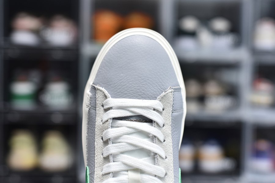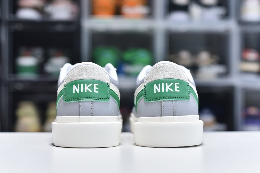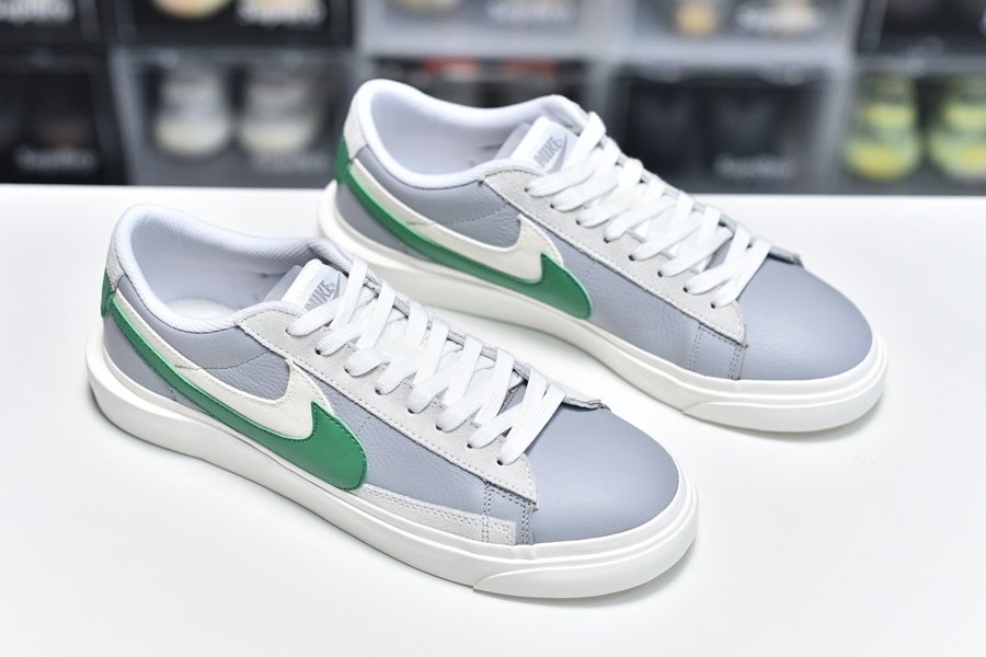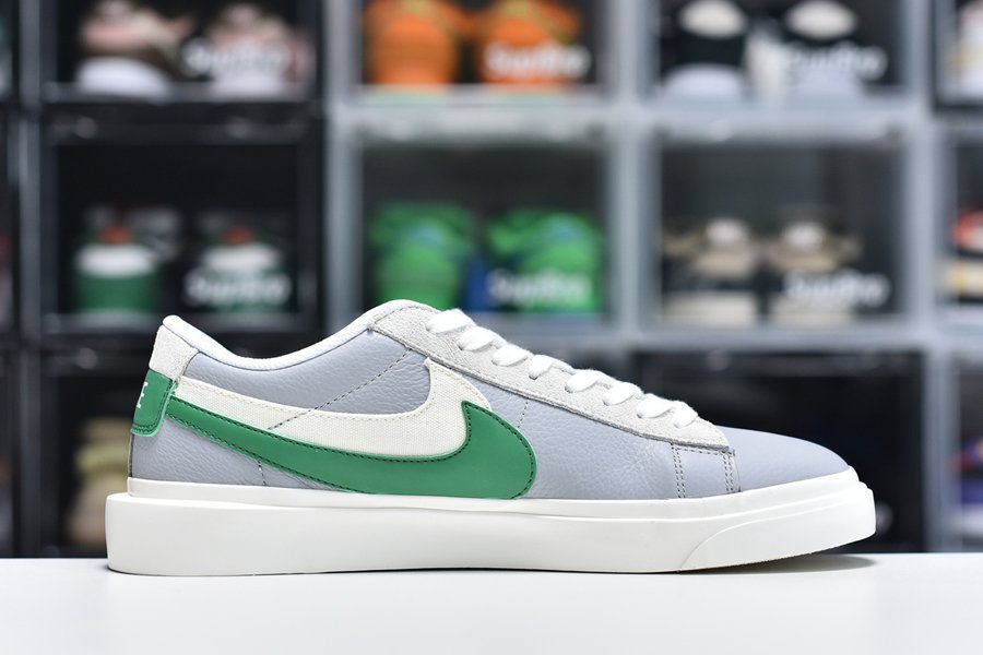 Dipped in a clean cut “White” and “Medium Grey” base, the Blazer Low Medium Grey Green is fashioned from some of the most premium materials any sneaker has ever seen. With a tumbled leather base, suede panelling graces the toe box and heel, while a dash of canvas lands on the dual Swoosh setup along the lateral and medial side panels. Speaking of which, everything else has been doubled up too. From the tongue to the heel to even the midsole, Abe’s sought-after design works impeccably well, even on this Low silhouette. Rounding it all off are “Classic Green” accents that add just the perfect amount of contrast.