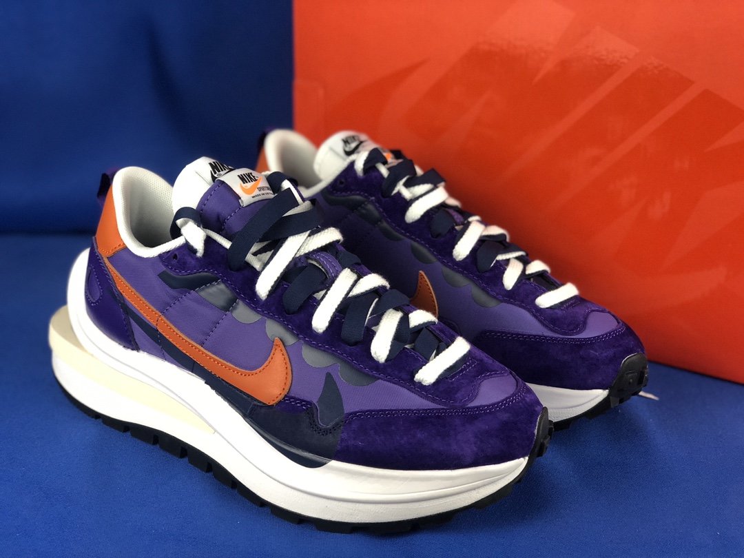 The sneaker has gained the nickname ‘Lakers’ in reference to its colour scheme matching that of the Los Angeles basketball team. A striking purple and orange colourway dominate this VaporWaffle, with the shoe’s upper boasting that breathable Flyknit fabric we enjoy on this silhouette. Leather and suede bring a premium feel, while white breaks up that bold colour combo across the midsole.