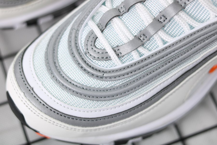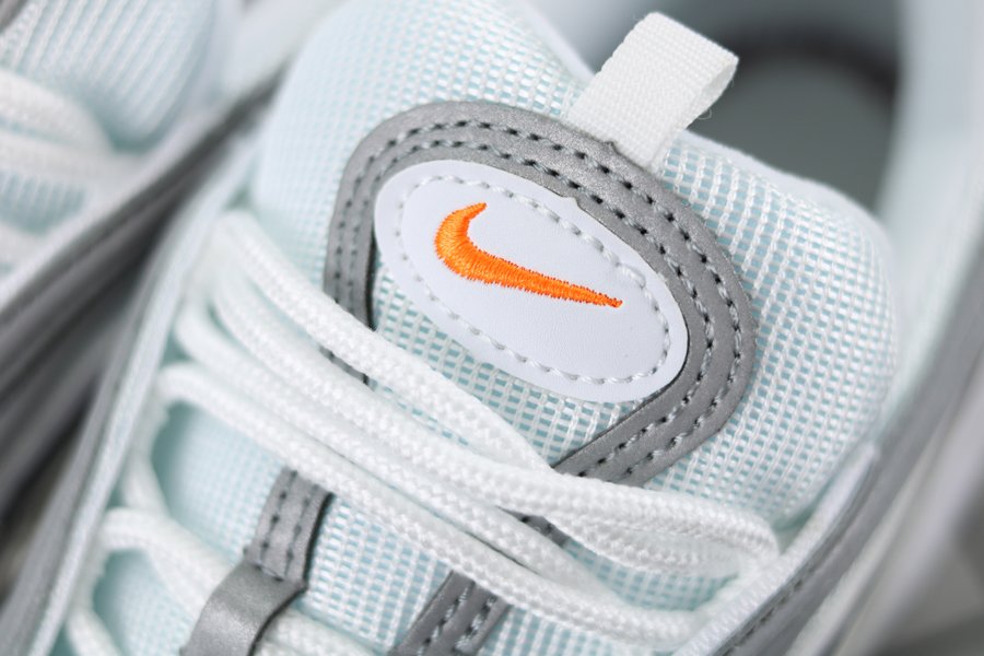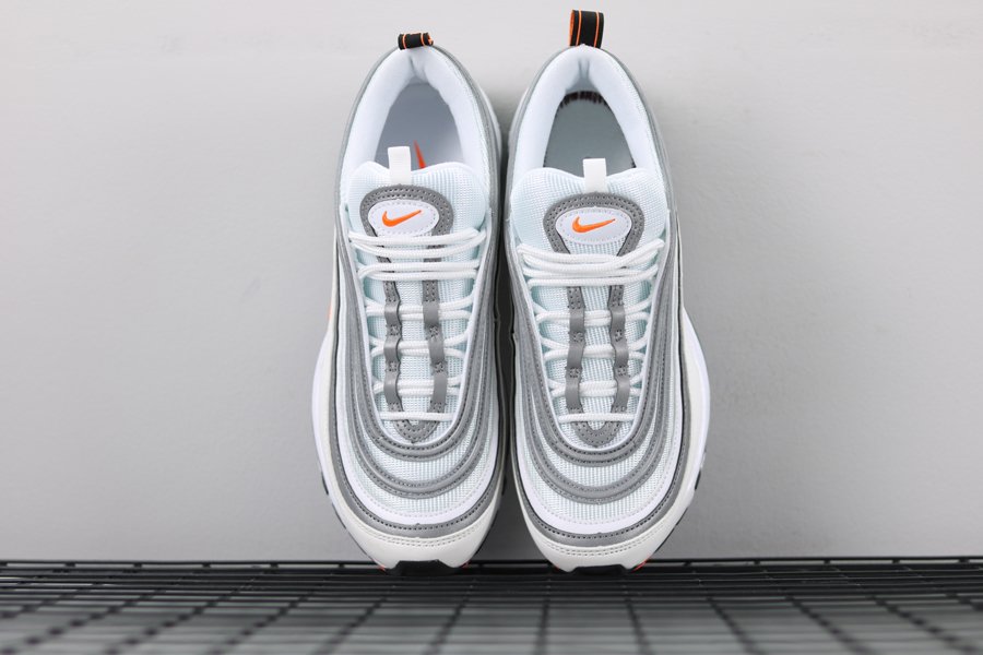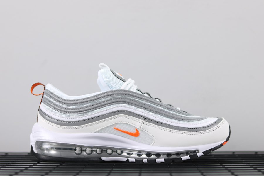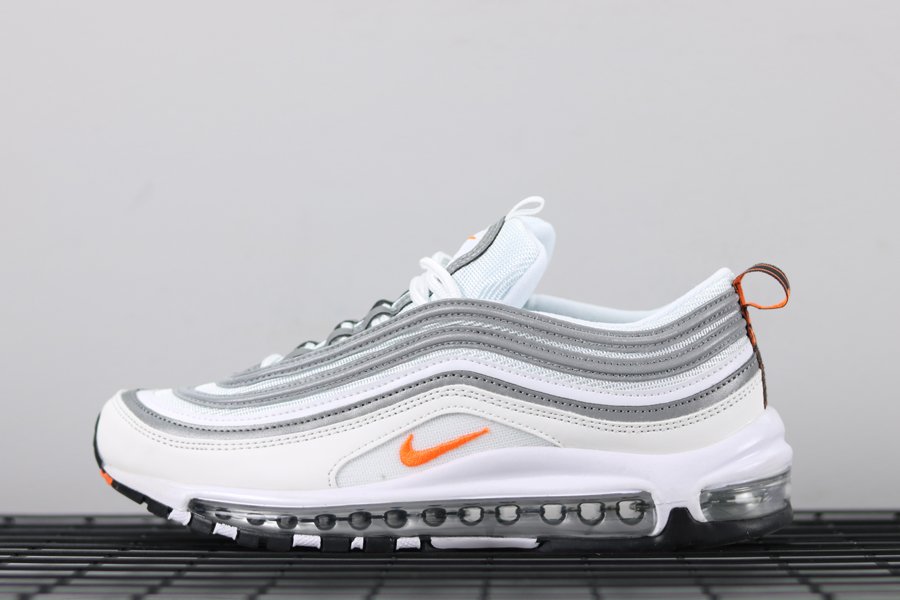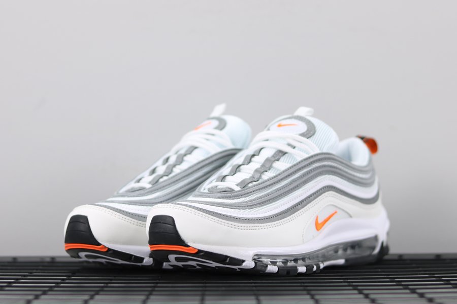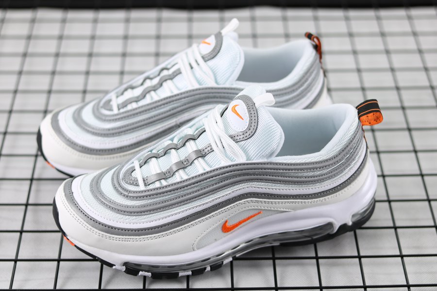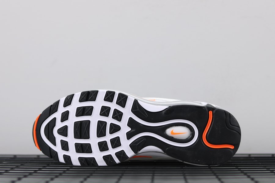 The AM97 Cone White is almost entirely tonal with the exception of the sidewall Swoosh and heel tab branding. This features in a bold shade of orange which brings just the right amount of colour to grab attention. The look is finished off with a sticky black outsole and a set of white laces are included.