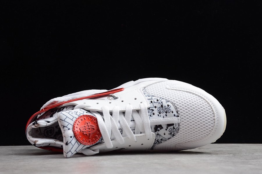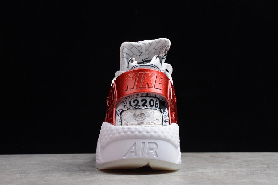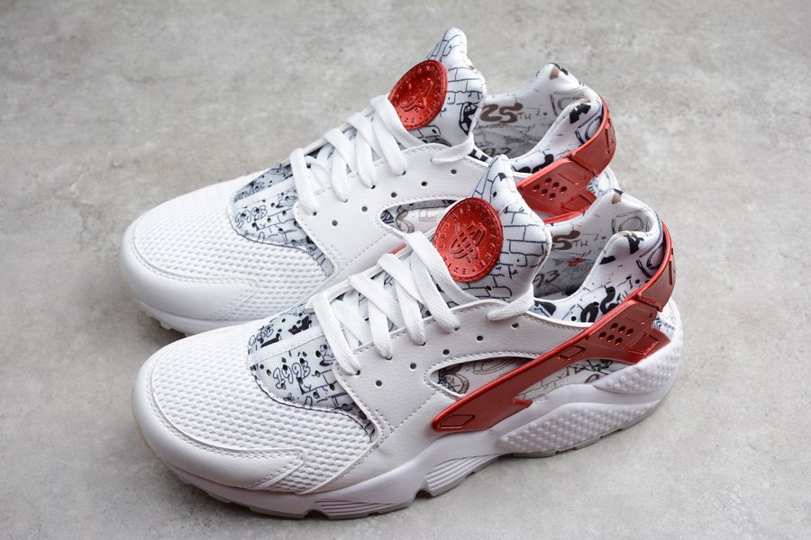 This Shoe Palace x Nike Air Huarache White University Red celebrates Shoe Palace’s 25th anniversary. The silhouette is detailed with Shoe Palace distinct artwork on the neoprene upper and insole created by Bay Area visual creator Joonbug. Contrasting metallic red is applied on the tongues and heel caging, while a white midsole and milky translucent outsole tops it all off.