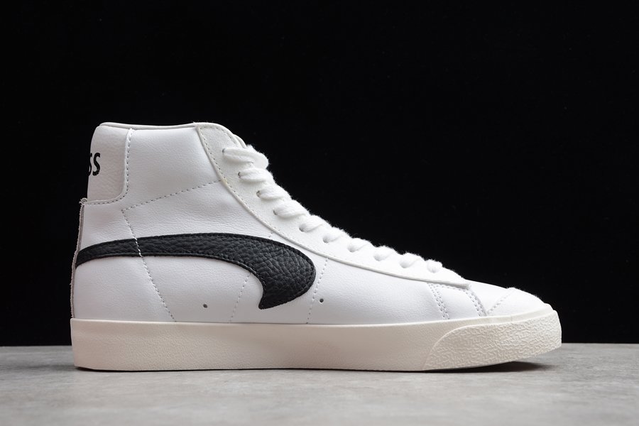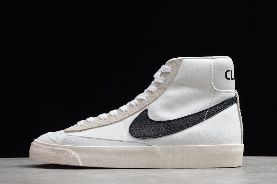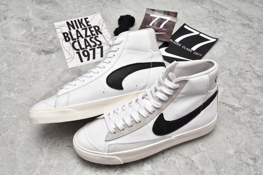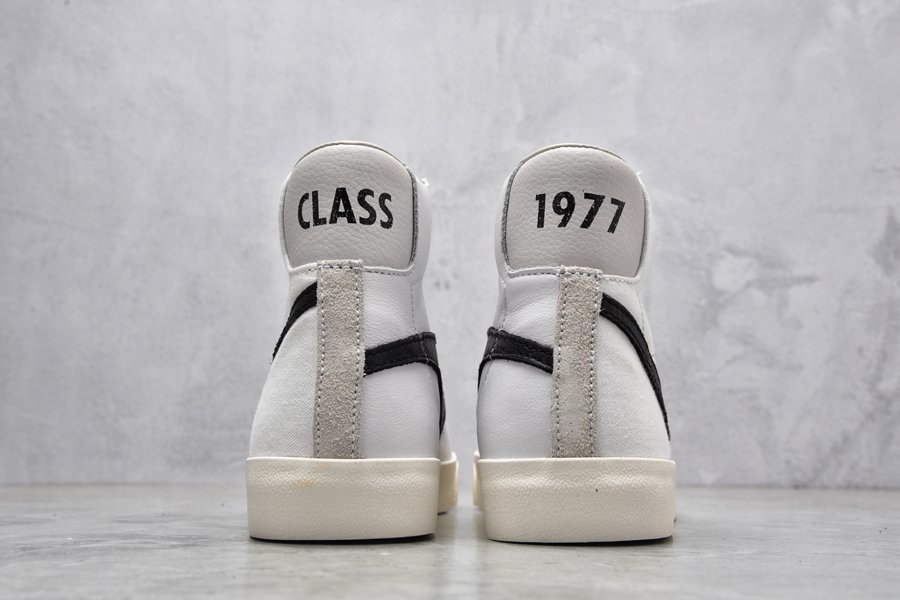 As you can see, these “Class 1977” Nike Blazer arrives with flipped medial Swooshes. But that’s not the only notable talking point. The luxed-out finish includes soft white leather uppers, grey suede hits on the heels and eyelets, eroded “Class” and “1977” prints on the heel and black tumbled leather Swooshes. Cream rubber soles and throwback tongue labels complete the vintage design.