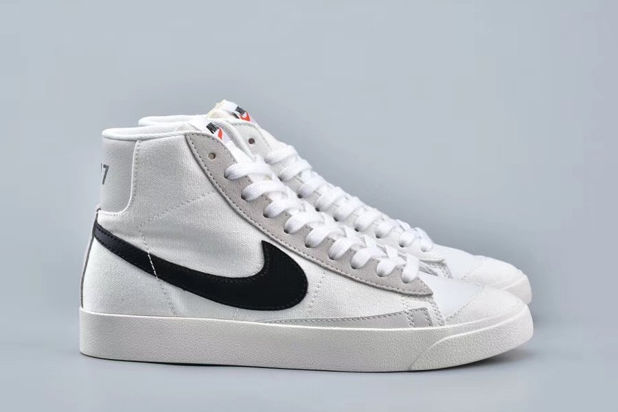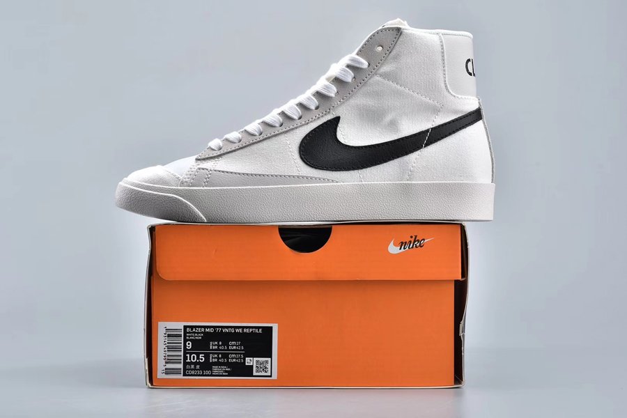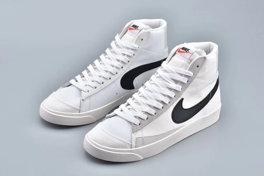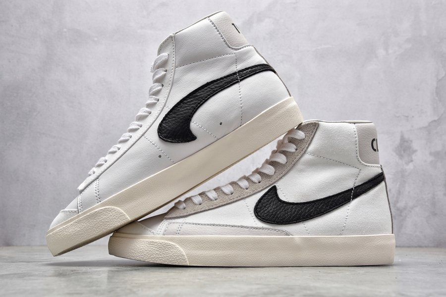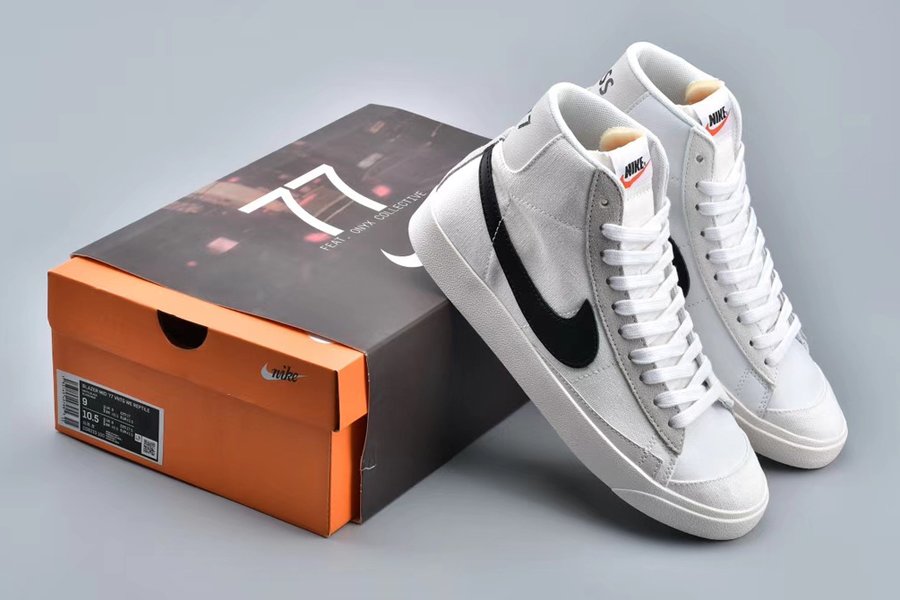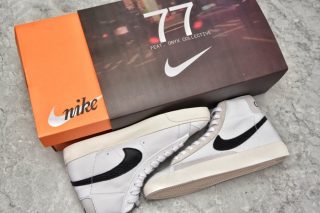 As you can see, these “Class 1977” Nike Blazer arrives with flipped medial Swooshes. But that’s not the only notable talking point. The luxed-out finish includes soft white leather uppers, grey suede hits on the heels and eyelets, eroded “Class” and “1977” prints on the heel and black tumbled leather Swooshes. Cream rubber soles and throwback tongue labels complete the vintage design.